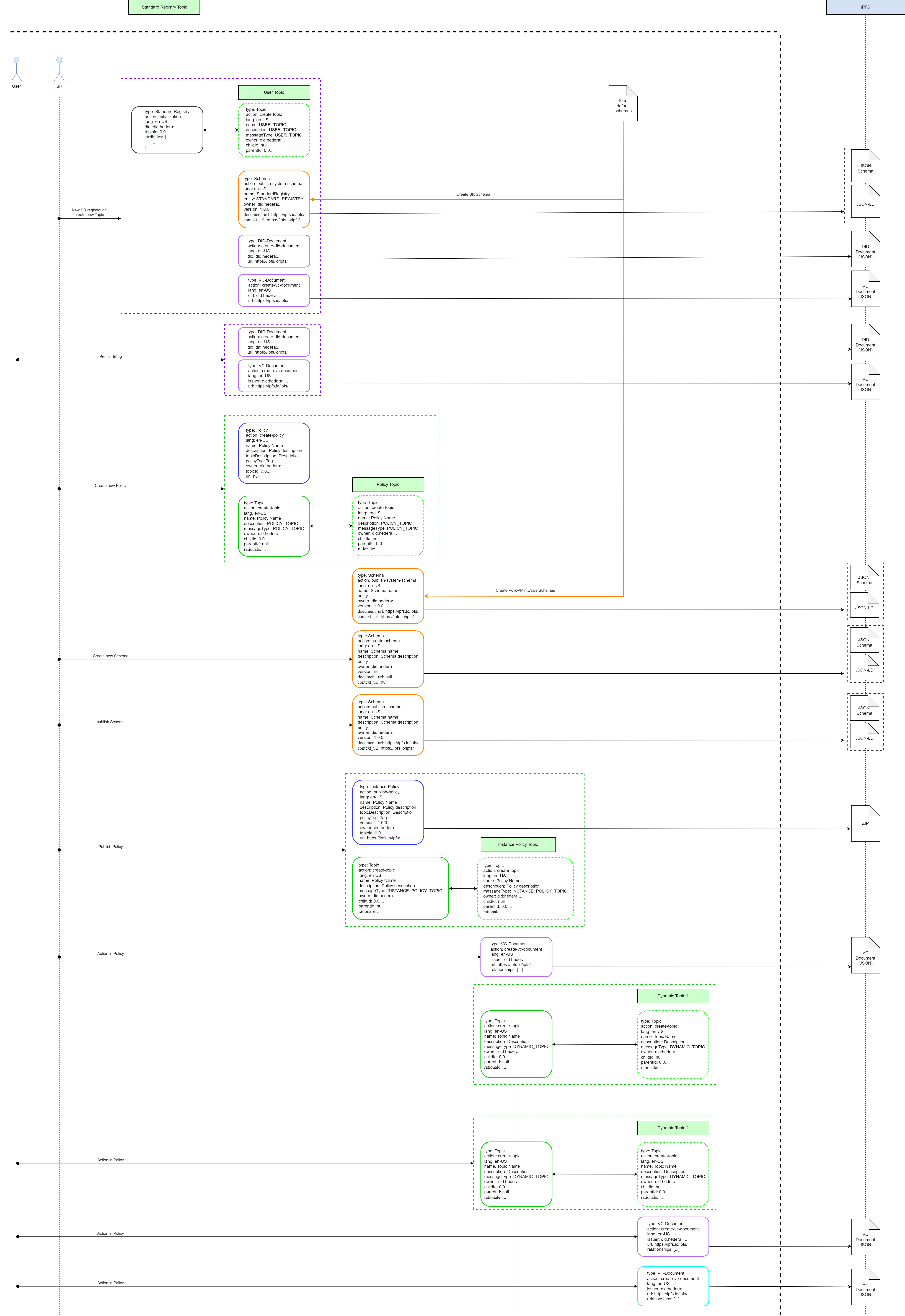 As visible from the below Topic Architecture diagram, for each published Policy instance, irrespective of it being a new version of existing Policy or a new Policy altogether, a corresponding new Topic is created in Hedera. This action is coupled with a notification message sent to an appropriate topic, for the former it is the 'new version' message which is posted into the top-level original Policy Topic, for the latter it is the 'new policy' message which is posted into the Standard Registry Topic.