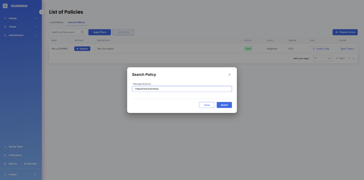 Once such policy is published it can be imported into other Guardian instances via its publishing Message ID.