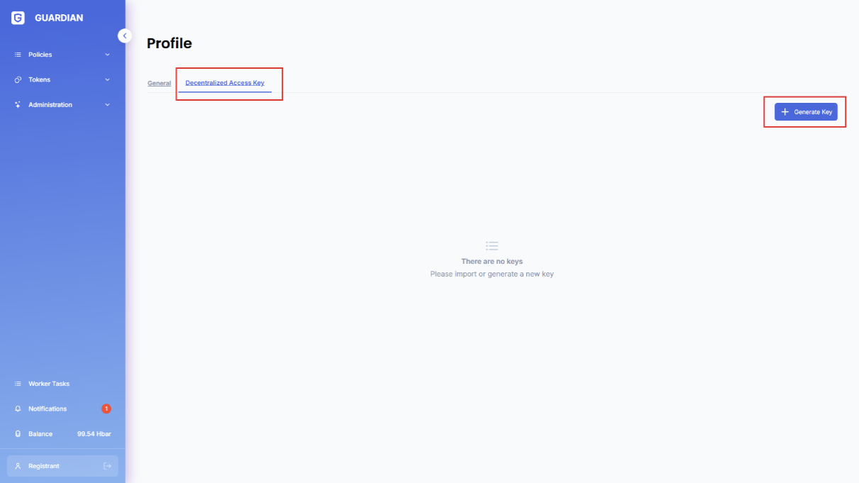 1. Import the key into the ‘remote’ Guardian via the user account page