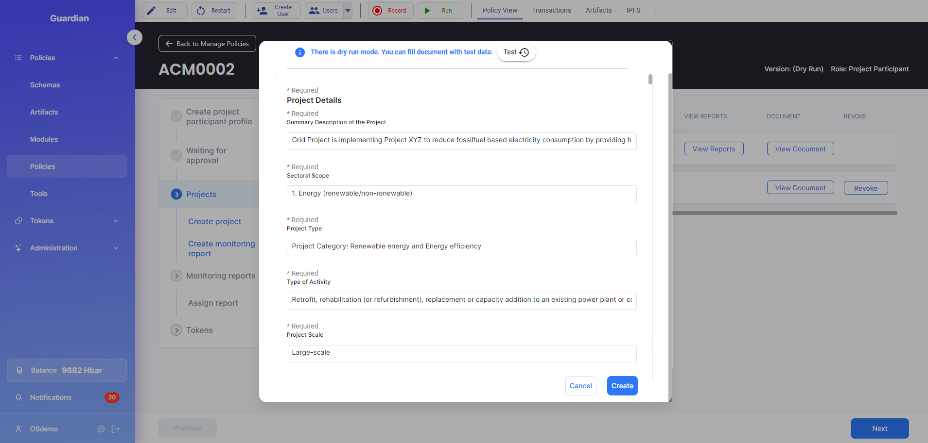 10. Log in as the Project Participant and create a monitoring report by clicking on the “Add Report” button then fill out the monitoring report form.