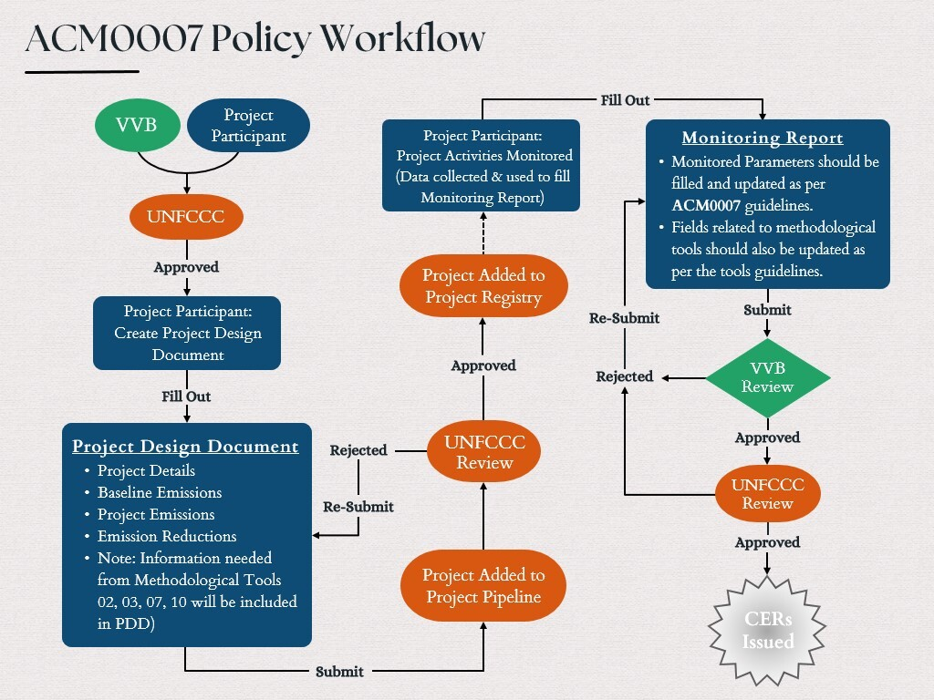 ACM0007 was designed to ensure accuracy in determining baseline emissions from continued single cycle operation and calculating project emissions from the combined cycle plant. It also accounts for any leakage emissions associated with the project activity.