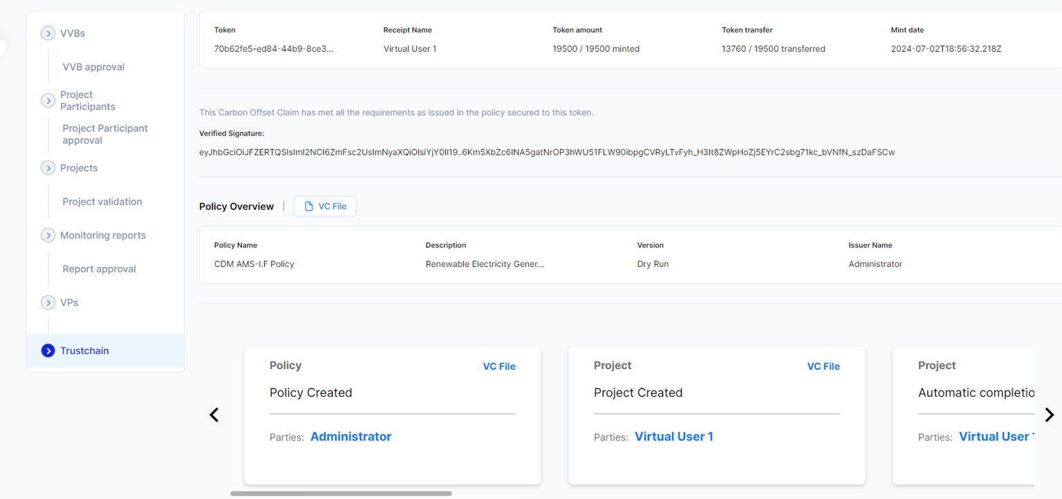 15. The TrustChain can also be viewed by clicking on the “View TrustChain” button. Please note that the token transfer may show “13760/19500” when the tokens are still transferring like the example provided below.