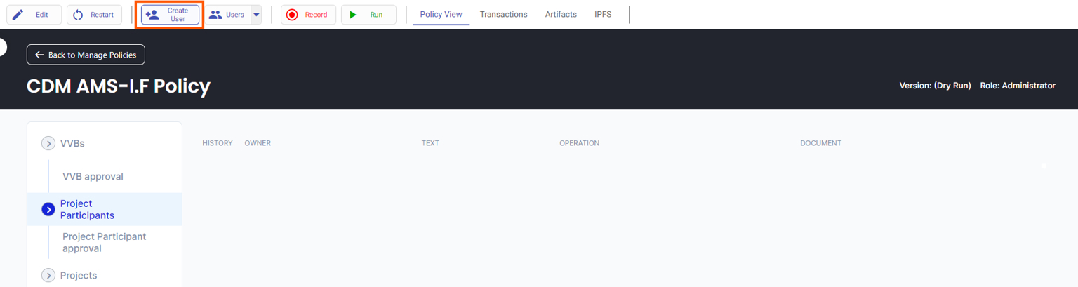 3. Create a new user by clicking the “Create User” button and assign their role as “Project Participant”.