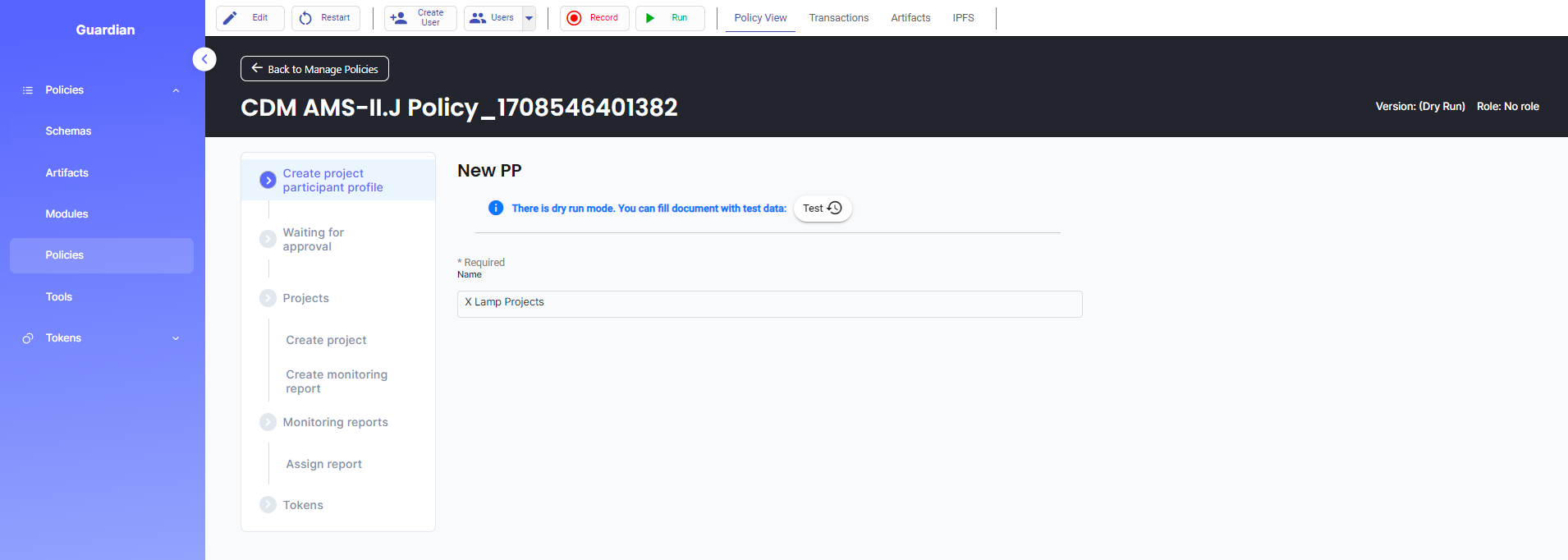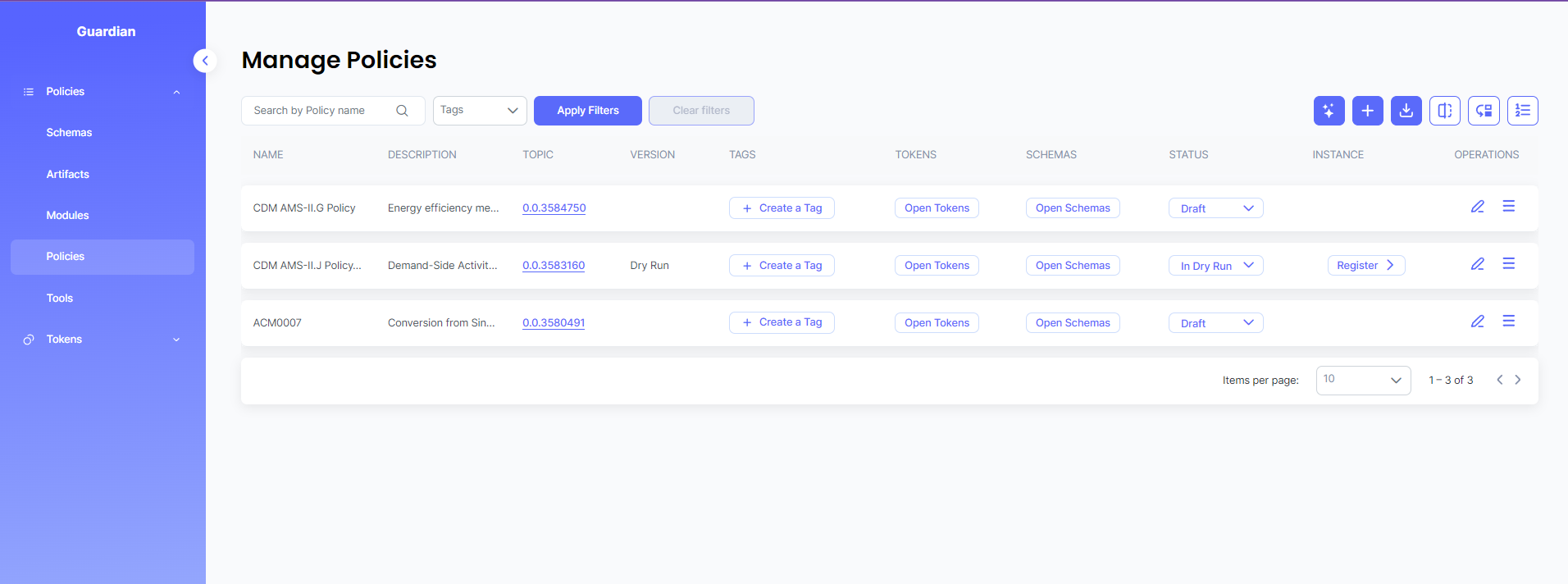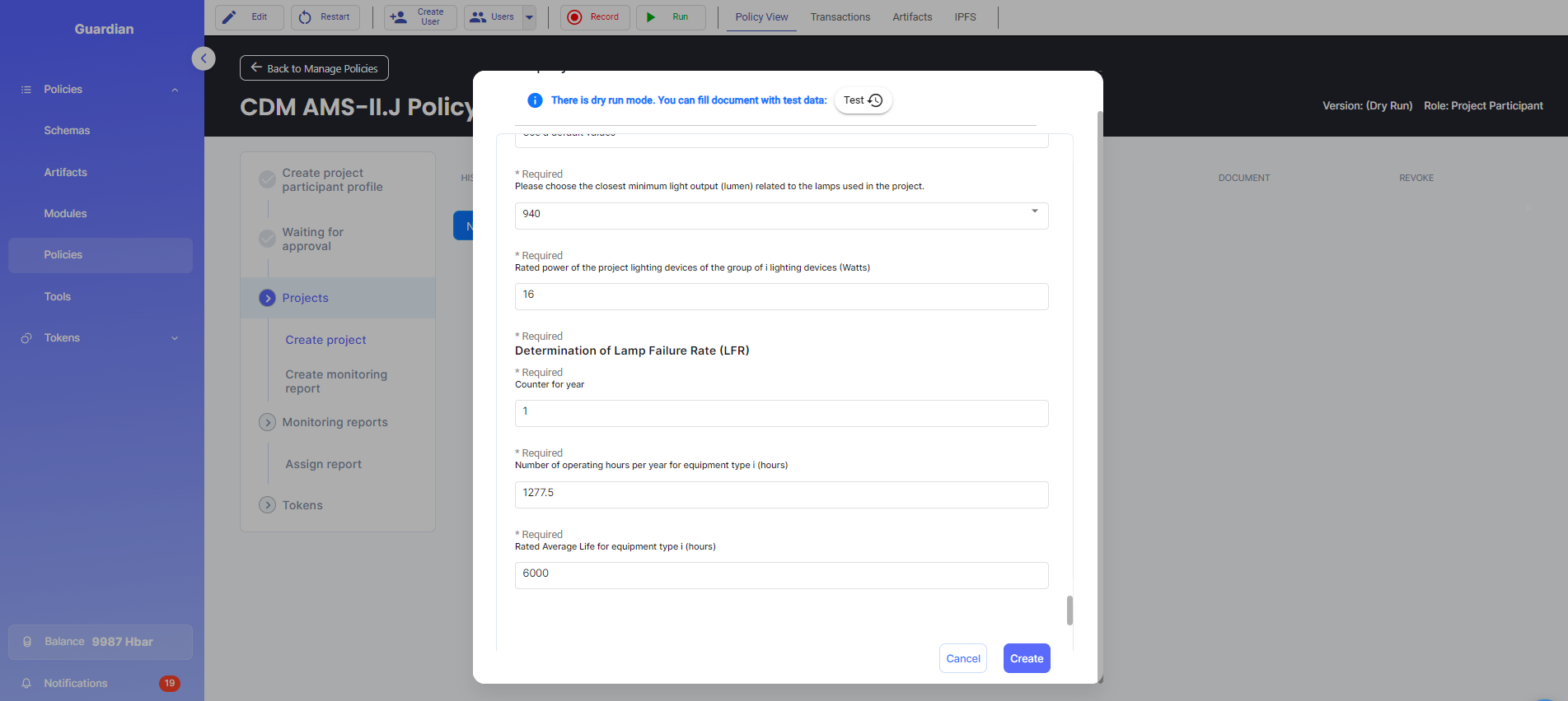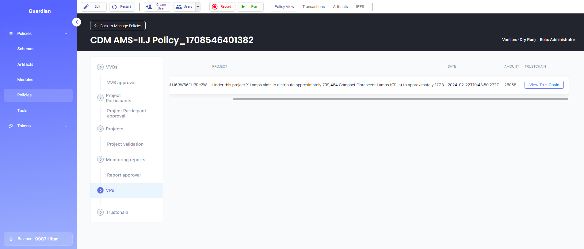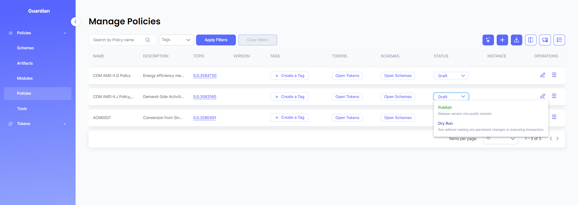 This policy is published to Hedera network and can either be imported via Github (.policy file) or IPFS timestamp.