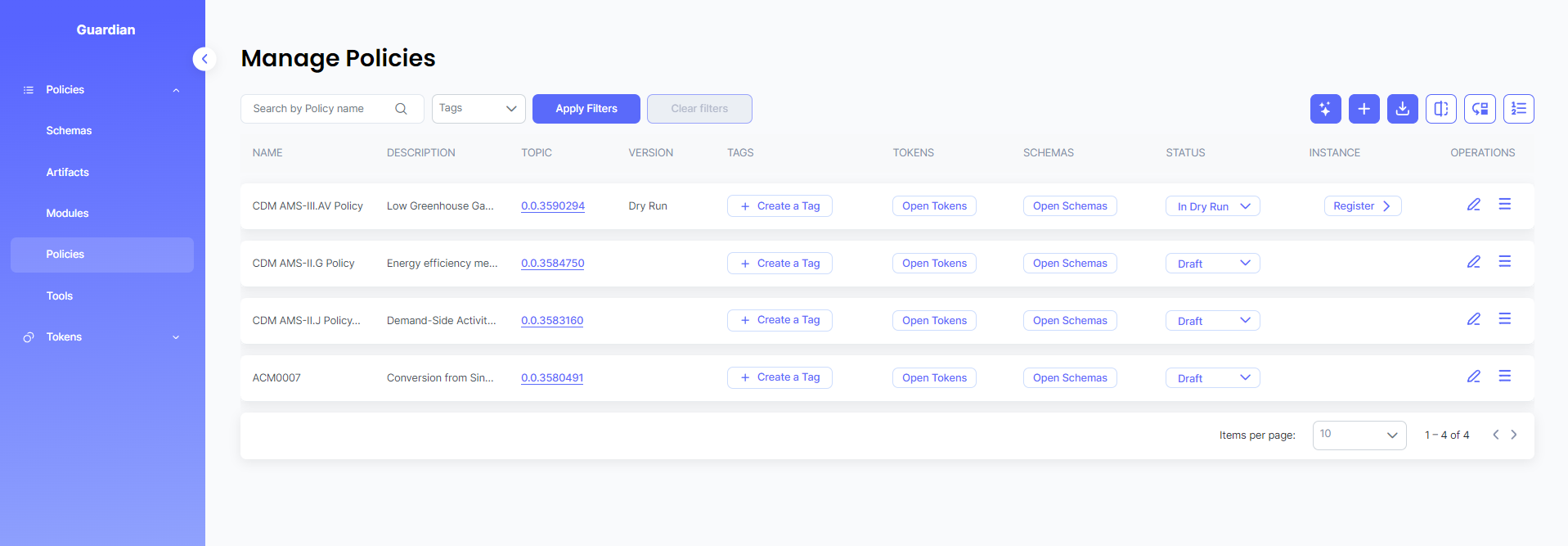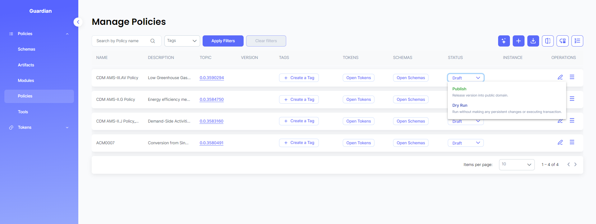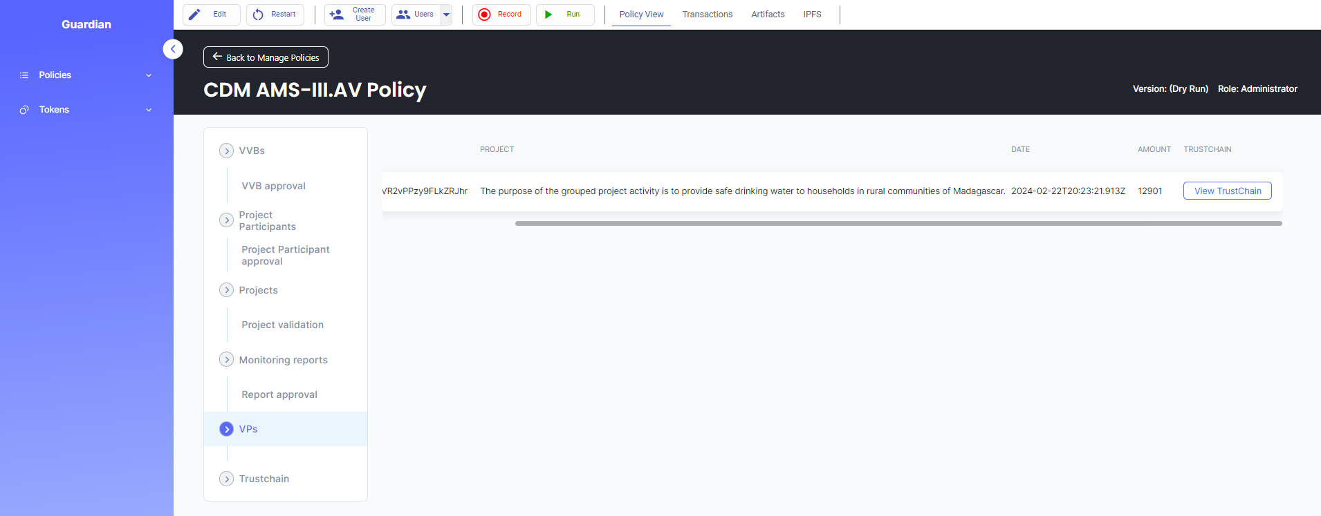 This policy is published to Hedera network and can either be imported via Github (.policy file) or IPFS timestamp.