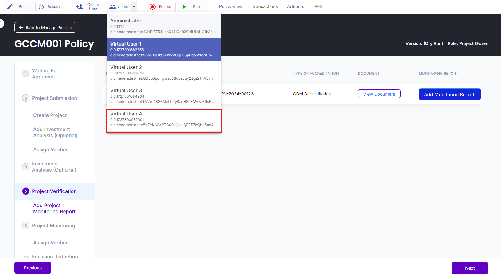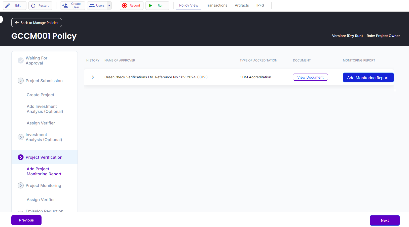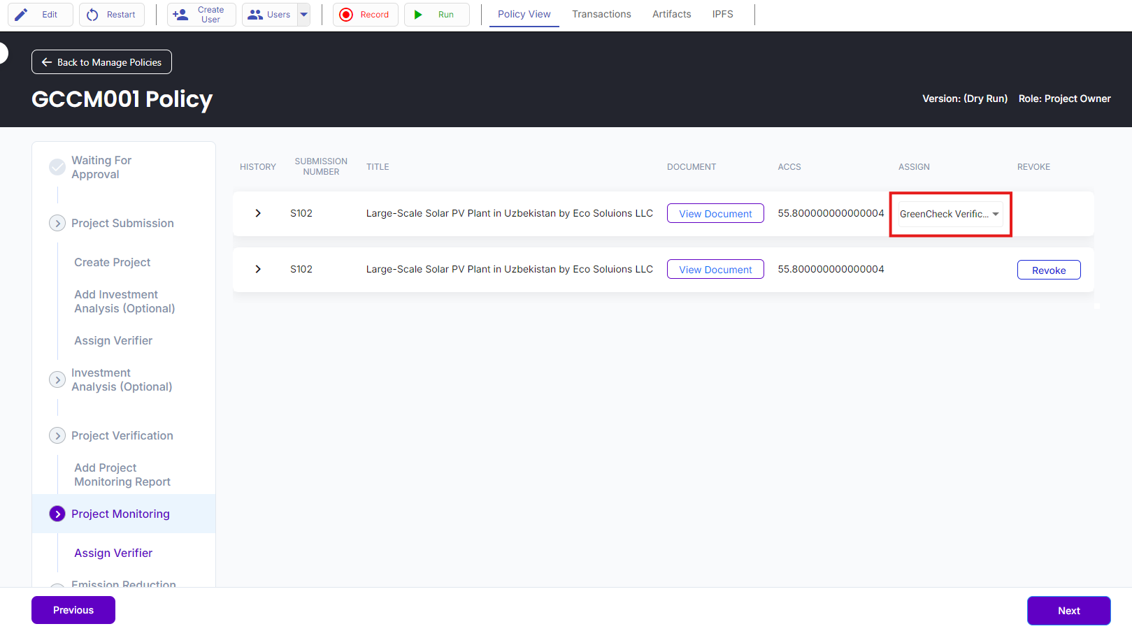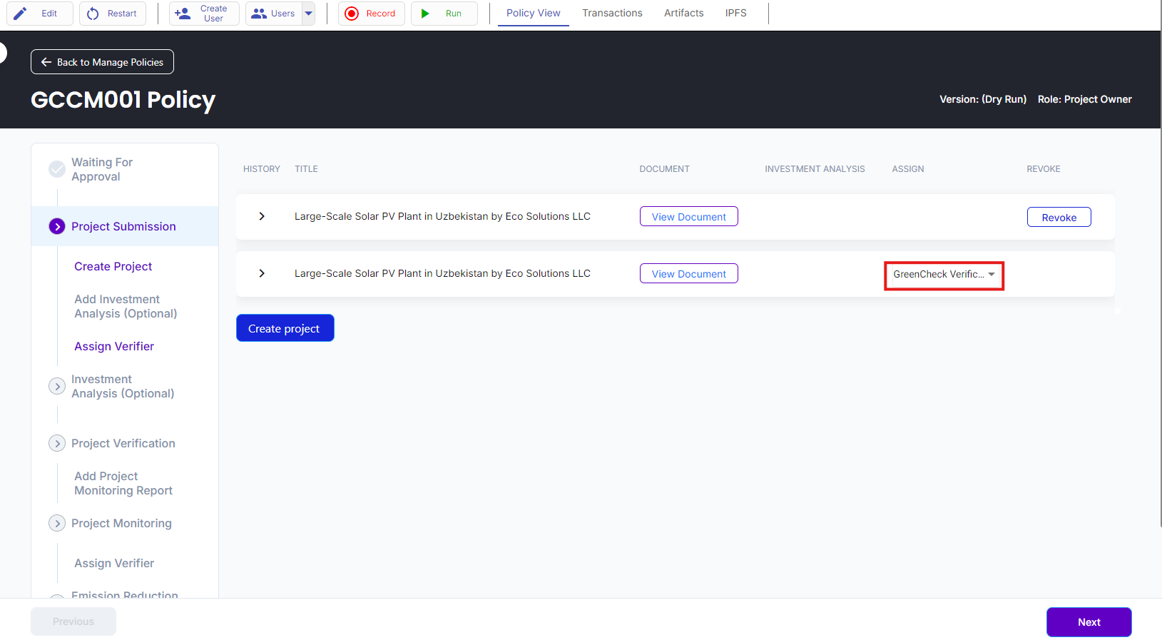 9. Log in to the Project Owner account and assign a Verifier to the project for third party verification.