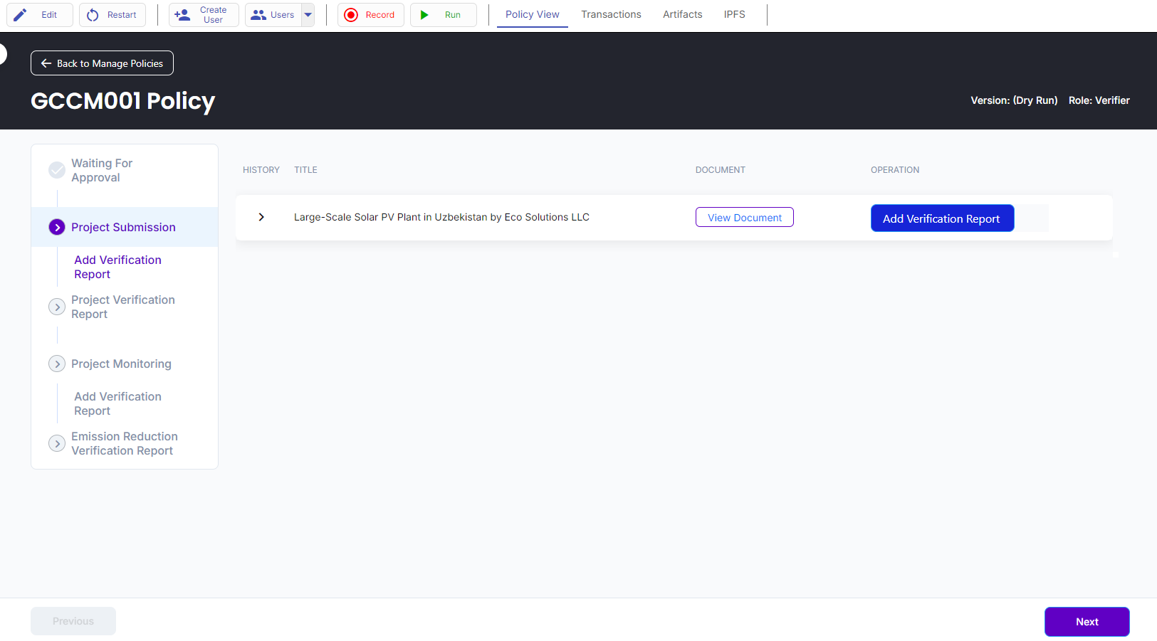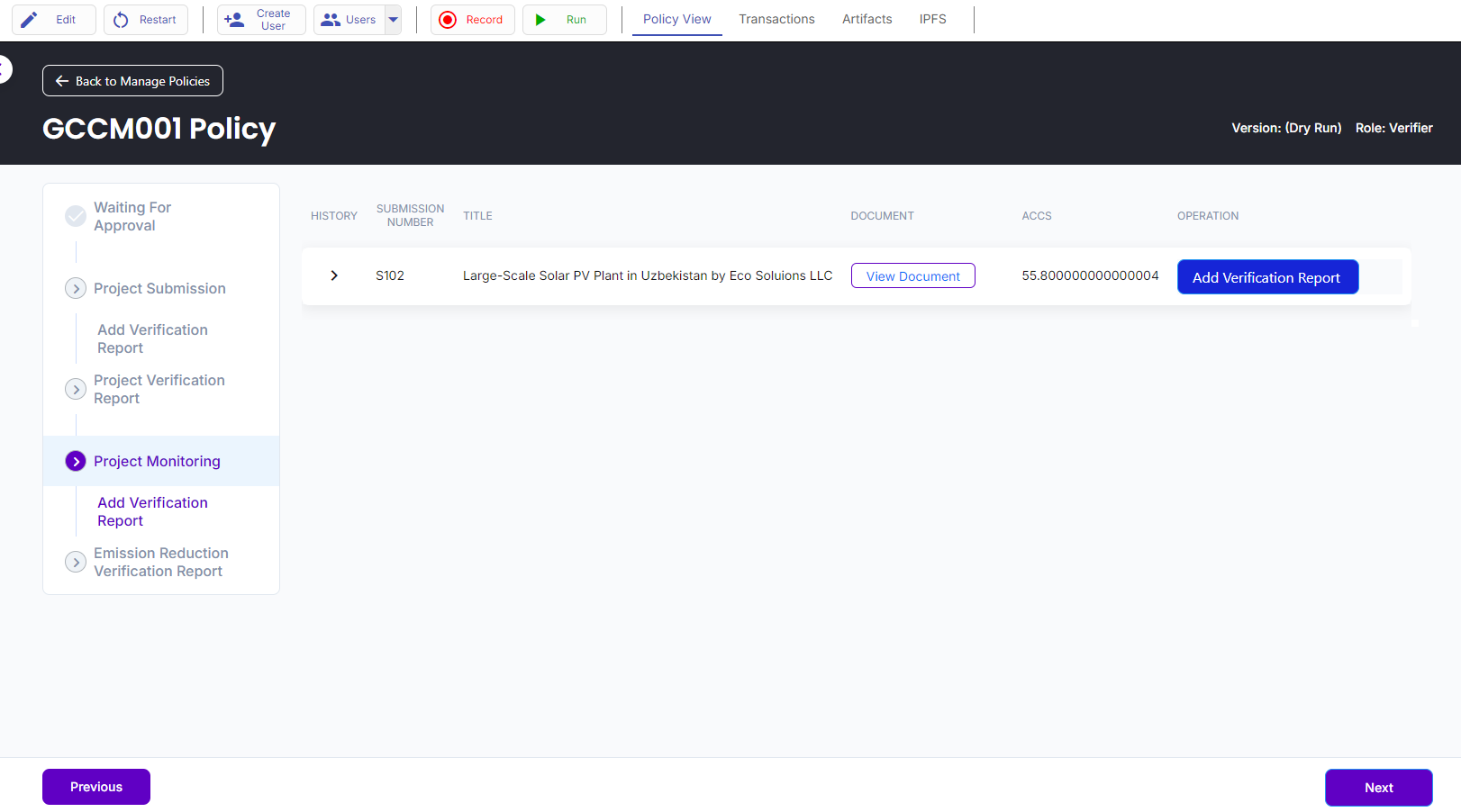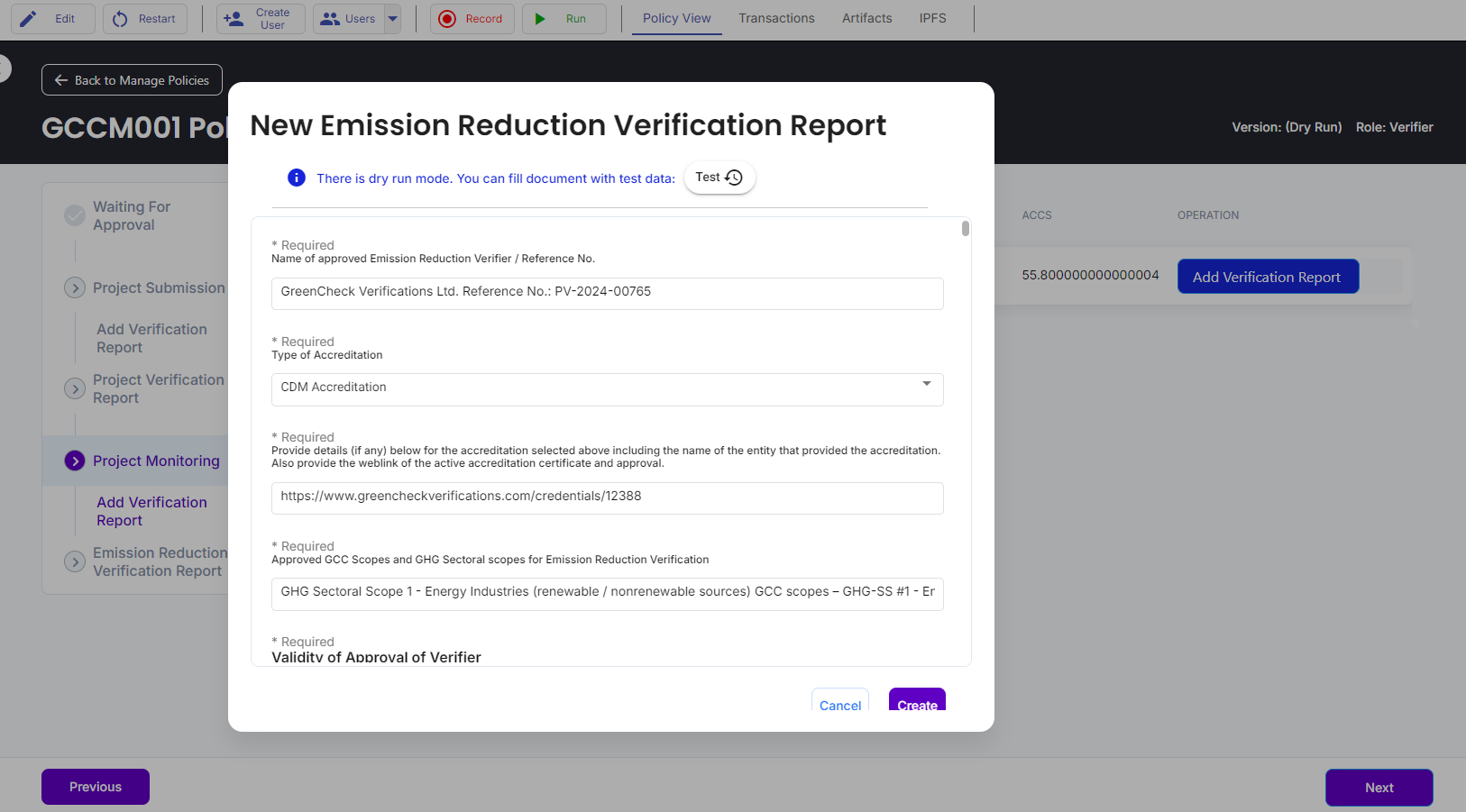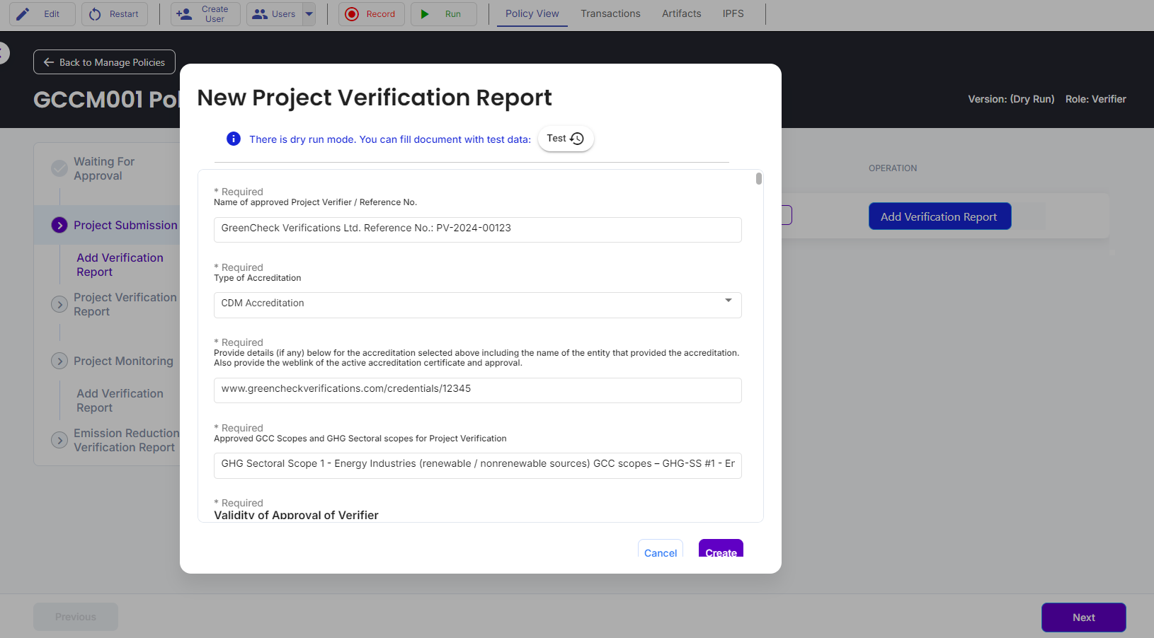 10. Using the assigned Verifier account, they can now complete and submit the Project Verification Report.