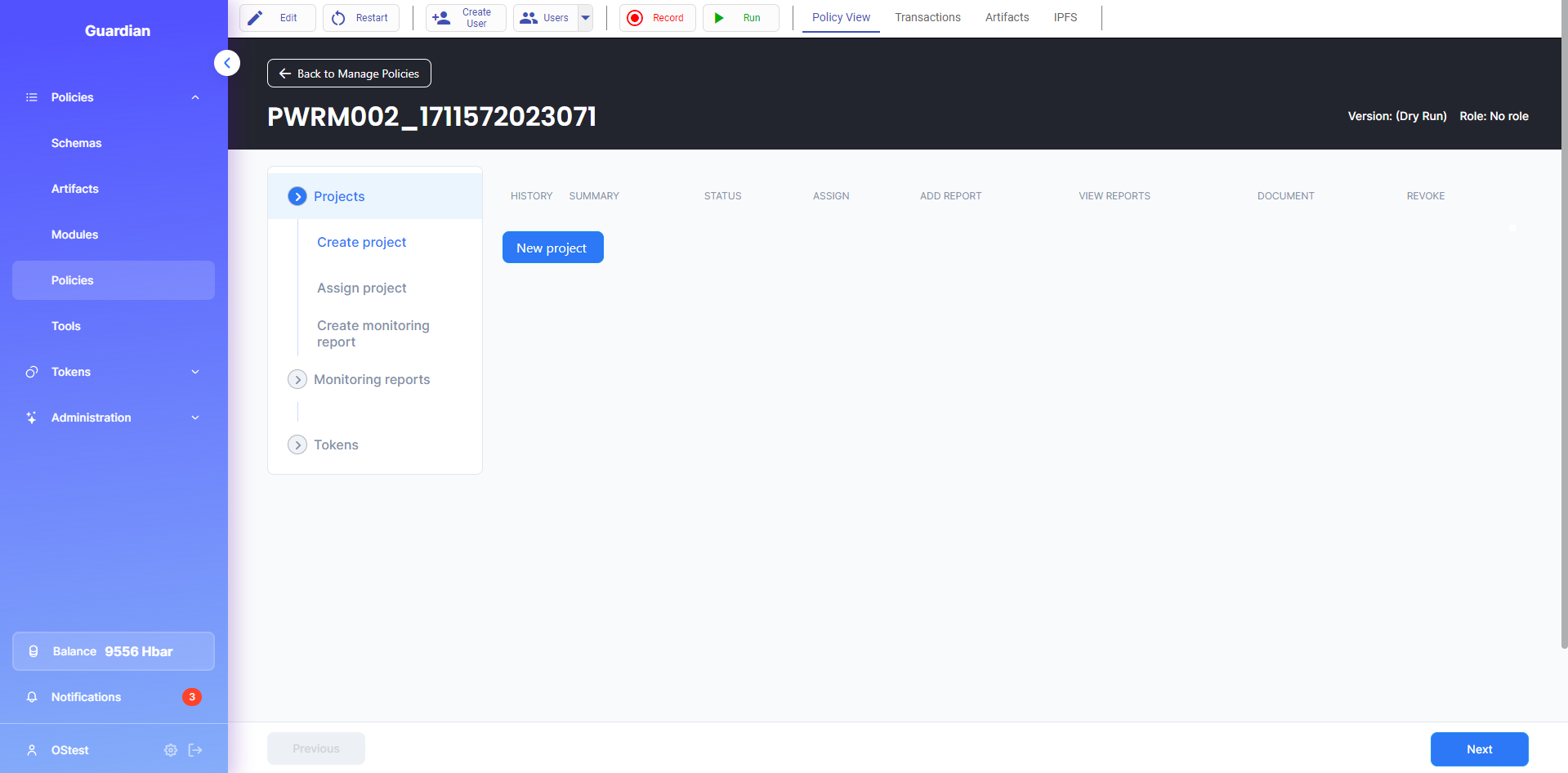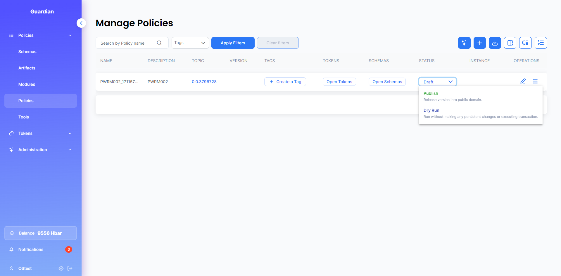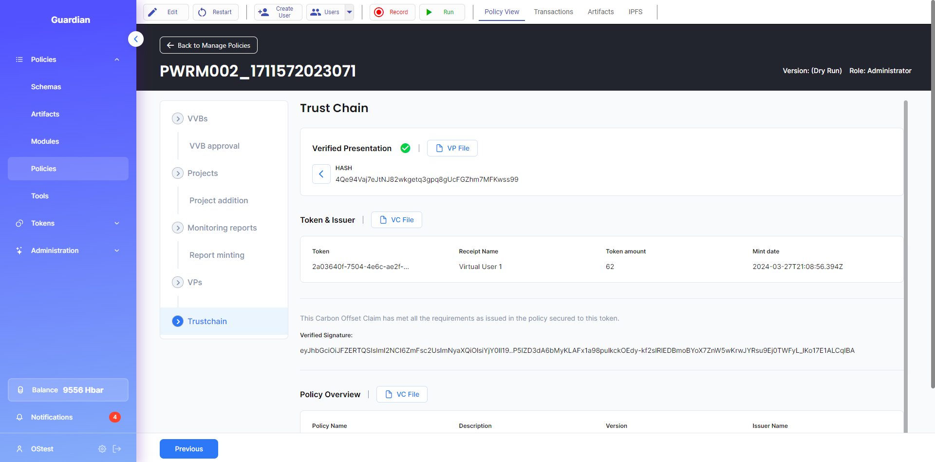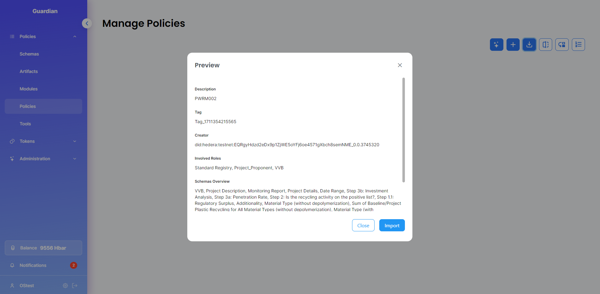 This policy is published to Hedera network and can either be imported via Github (.policy file) or IPFS timestamp.