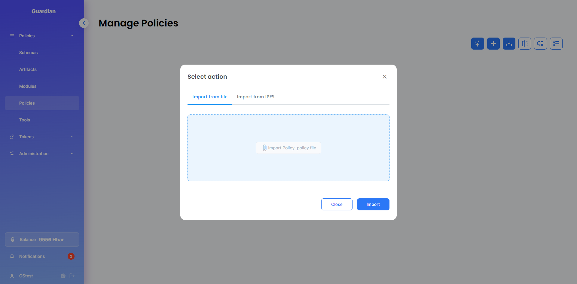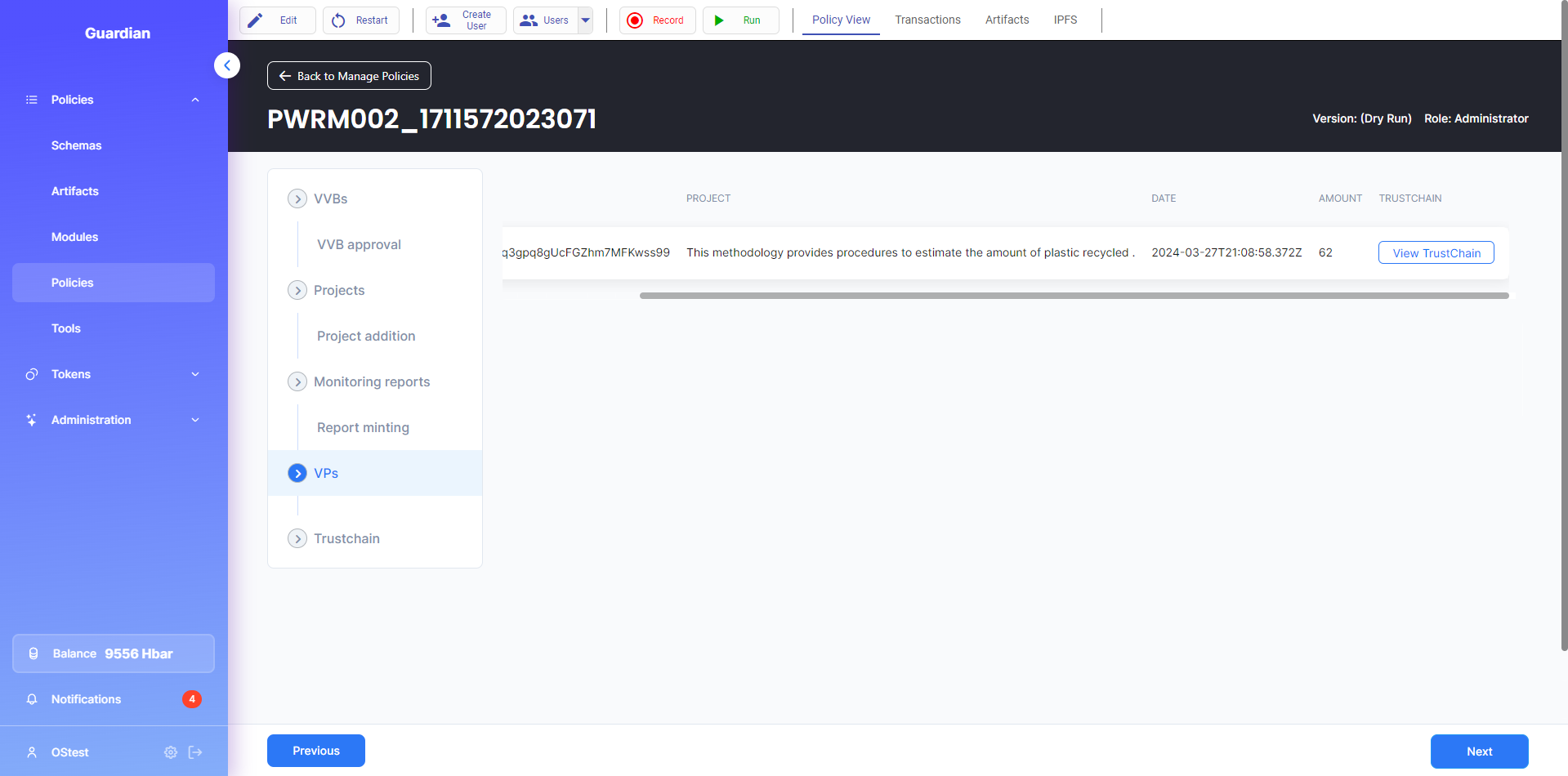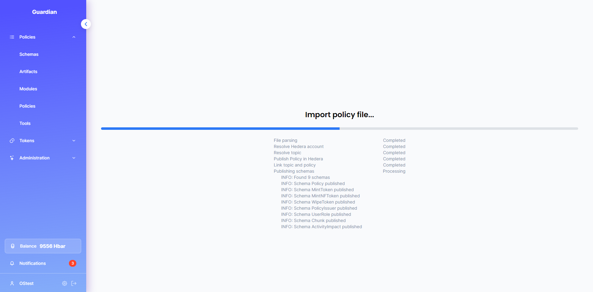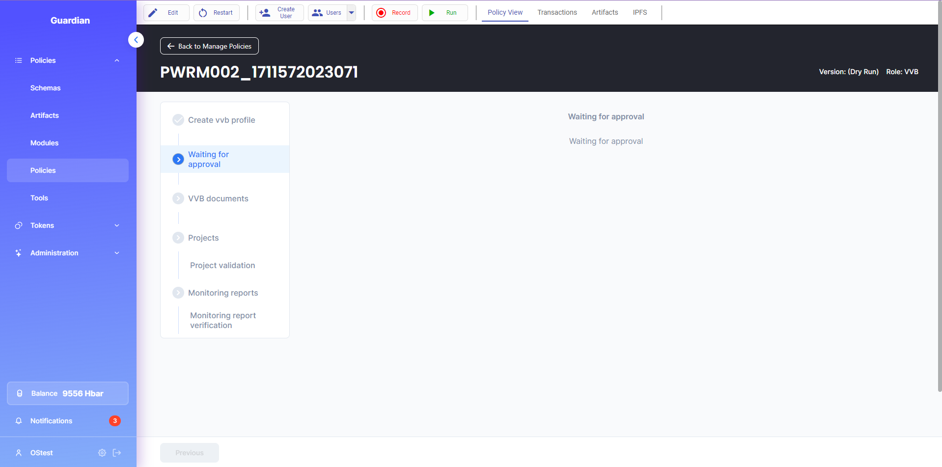 This policy is published to Hedera network and can either be imported via Github (.policy file) or IPFS timestamp.