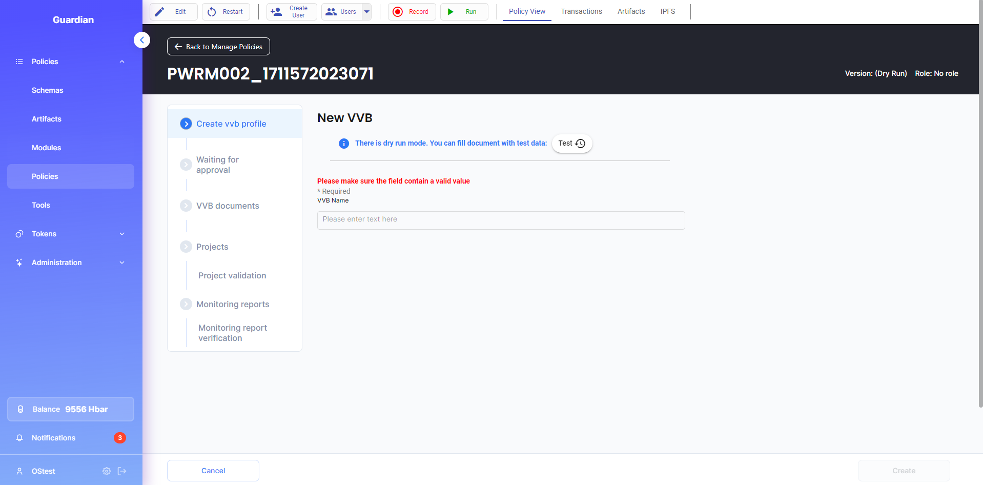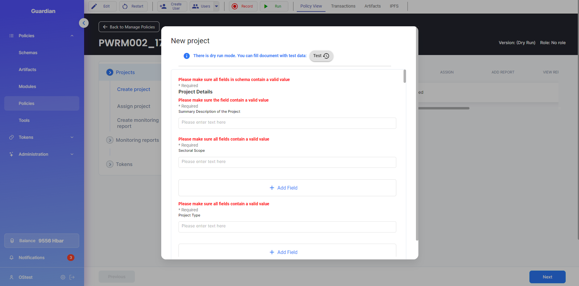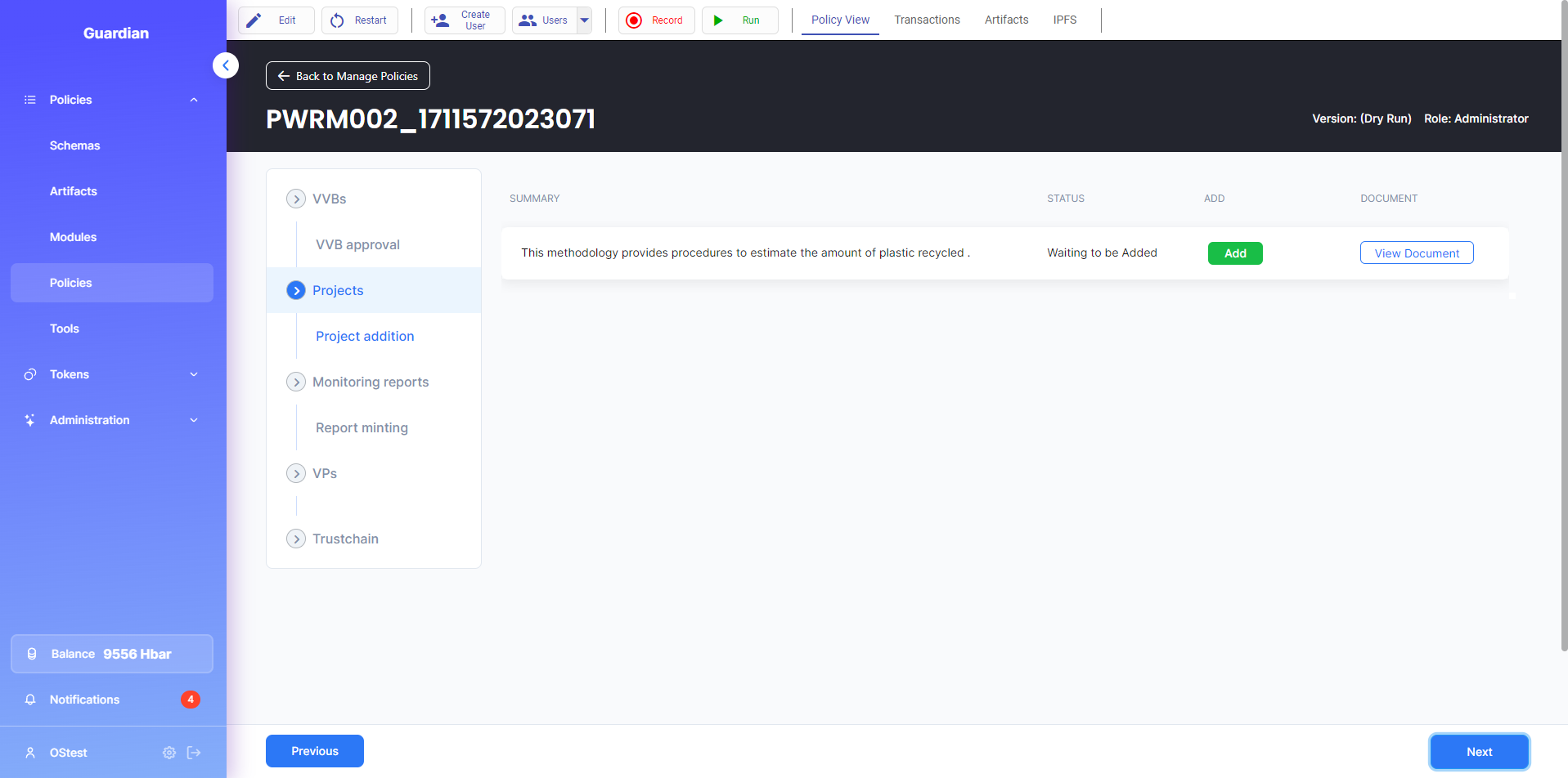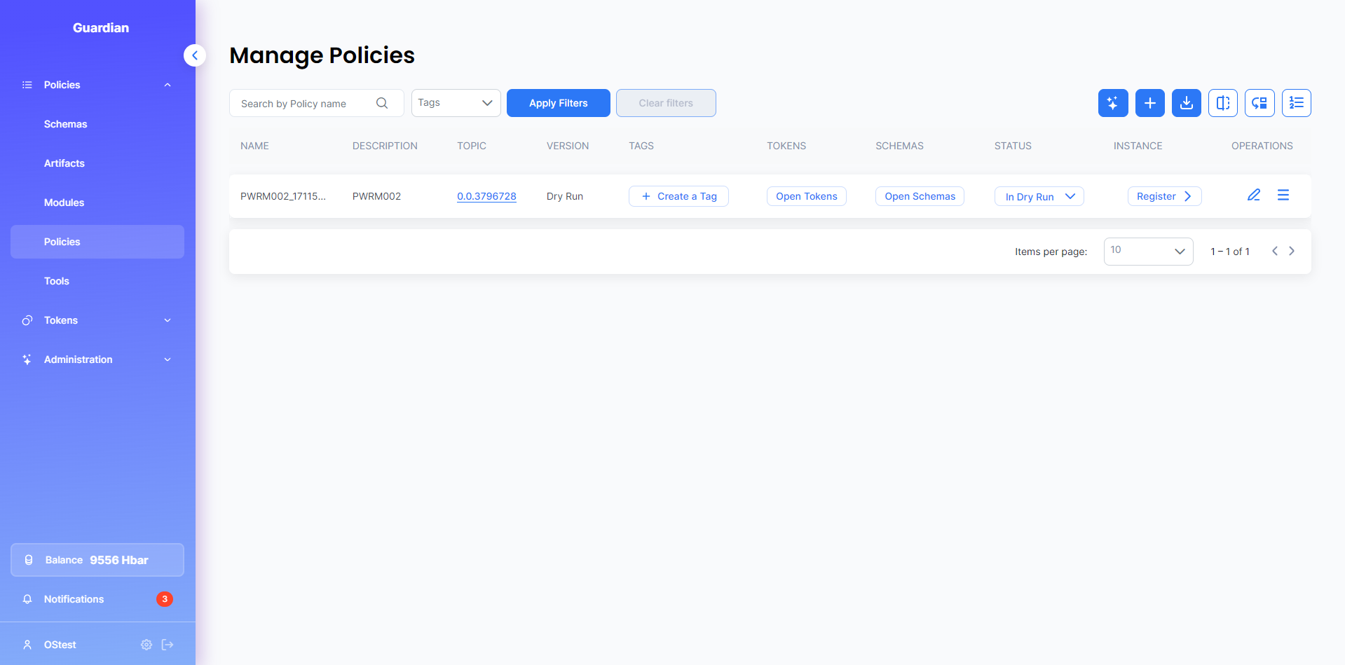 This policy is published to Hedera network and can either be imported via Github (.policy file) or IPFS timestamp.