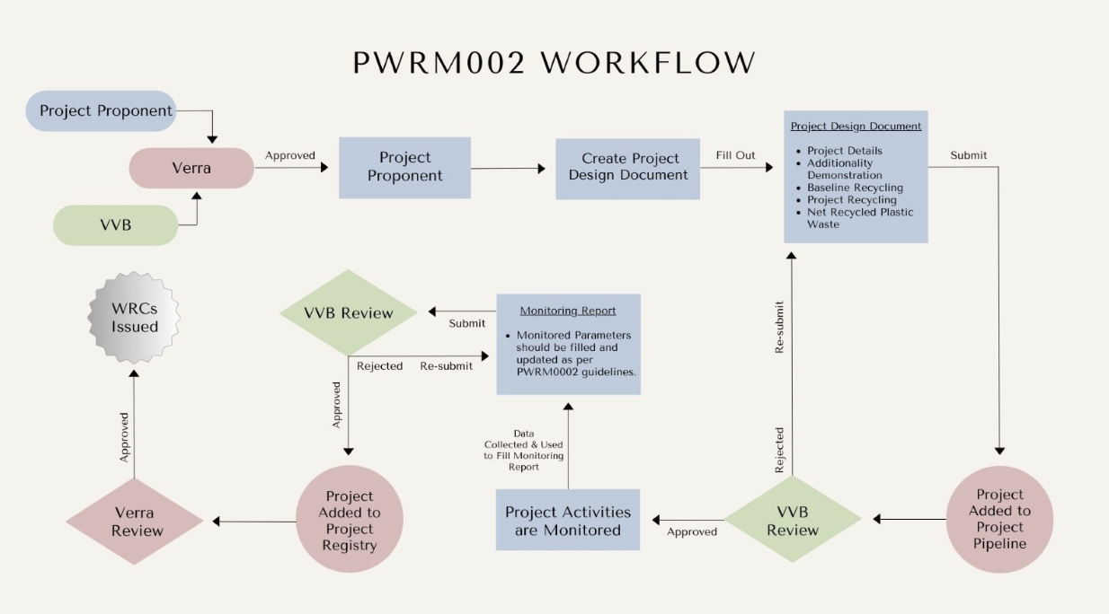 The Plastic Waste Recycling Methodology (PWRM0002) serves as a structured framework providing guidelines and procedures for estimating and quantifying additional plastic waste recycled through chemical and/or mechanical recycling activities. PWRM0002 focuses on promoting recycling initiatives that divert plastic waste from landfills and incinerators, thereby reducing environmental pollution and conserving valuable resources.