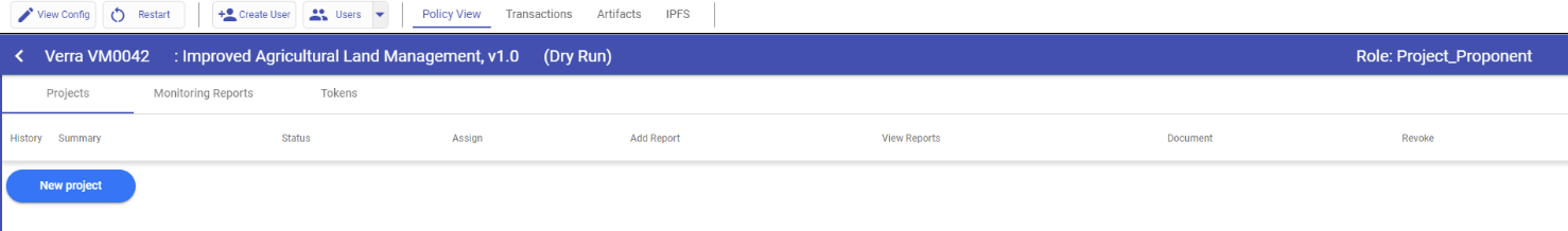Click on the Project Proponent profile and select “New Project”.
