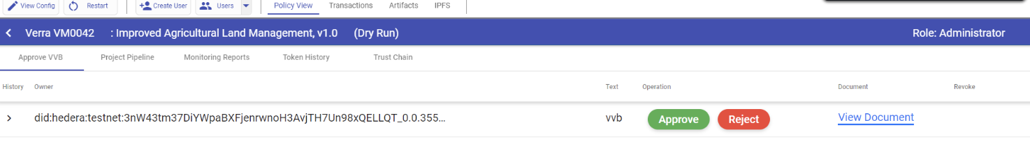 Go to the Standard Registry profile and approve the VVB in the “Approve VVB” tab.