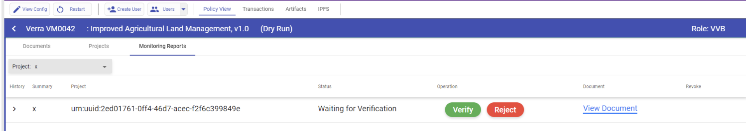 Once you have completed the monitoring report, please access the VVB profile and go to the monitoring reports tab. Here, you will find a "Verify" button - select that to proceed.