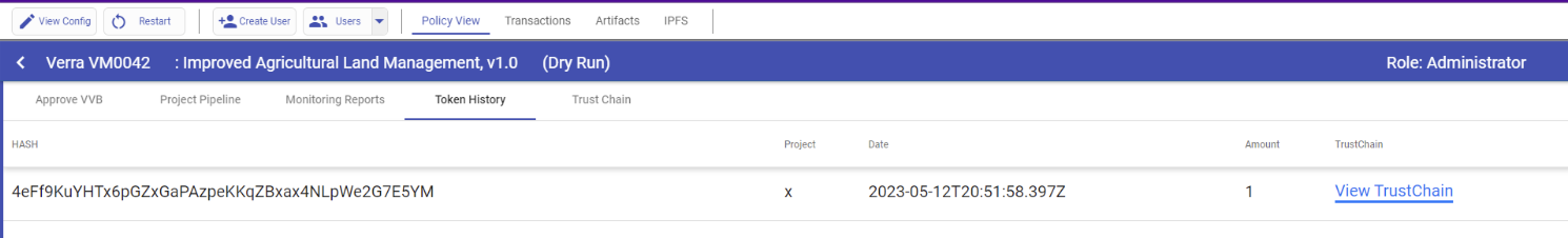 By accessing the "Token History" tab, you can view the number of tokens that have been minted. Additionally, clicking on the "View TrustChain" button will allow you to view the TrustChain.