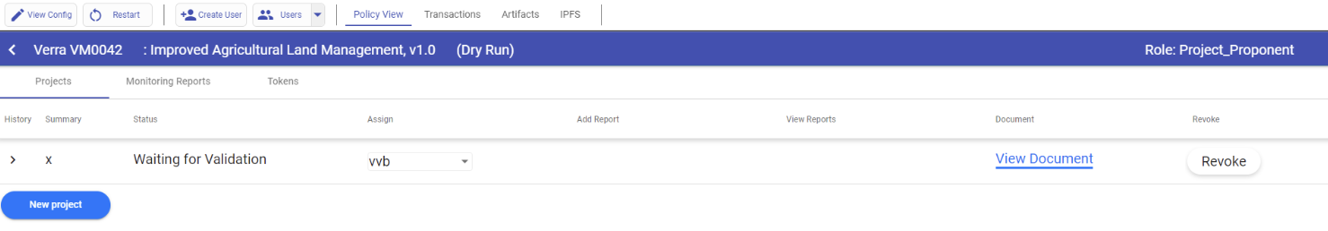 Next, proceed to the Project Proponent profile and locate the "Projects" section. Then, click on the downward arrow and assign the VVB to the project.