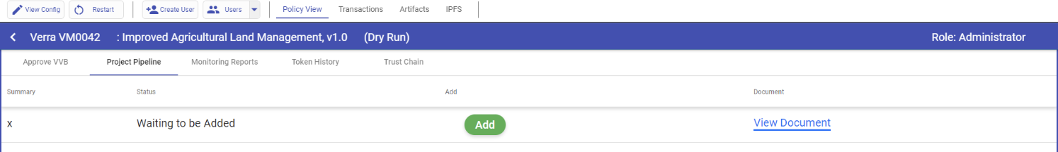 To proceed with the flow, the next step is to access the Standard Registry profile and include the project in the project pipeline. This can be achieved by navigating to the "Project Pipeline" tab and selecting the "Add" option.