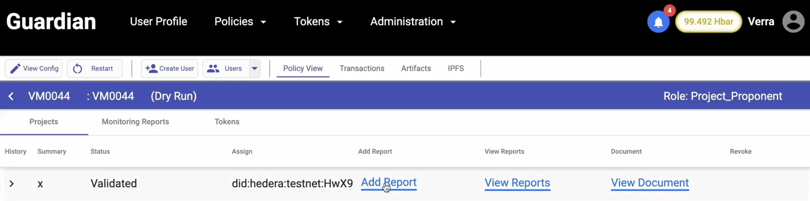 Once validated, we login as Project Proponent and Add Monitoring Report.