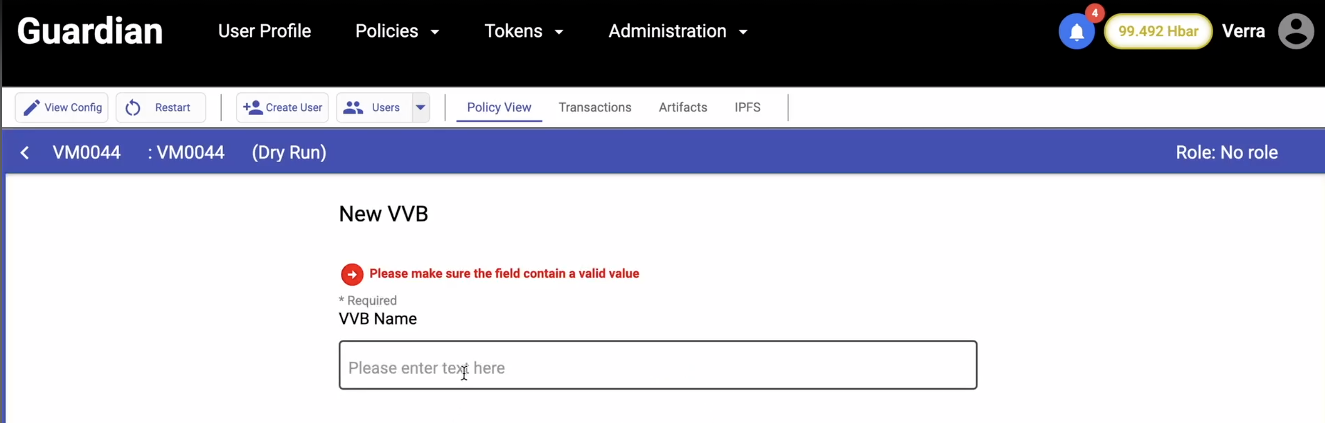 This policy is published to Hedera network and can either be imported via Github (.policy file) or IPFS timestamp.