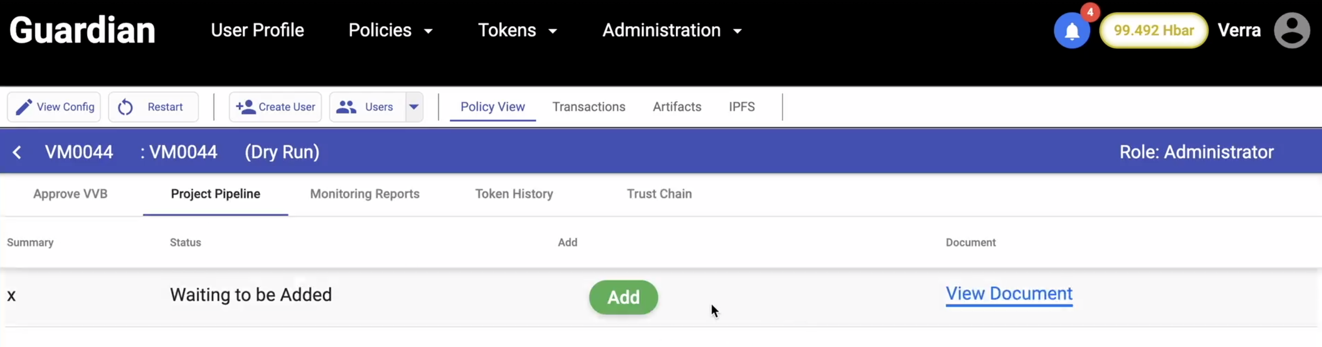 9. Once VVB is approved, SR goes to Project Pipeline tab and click on Add button