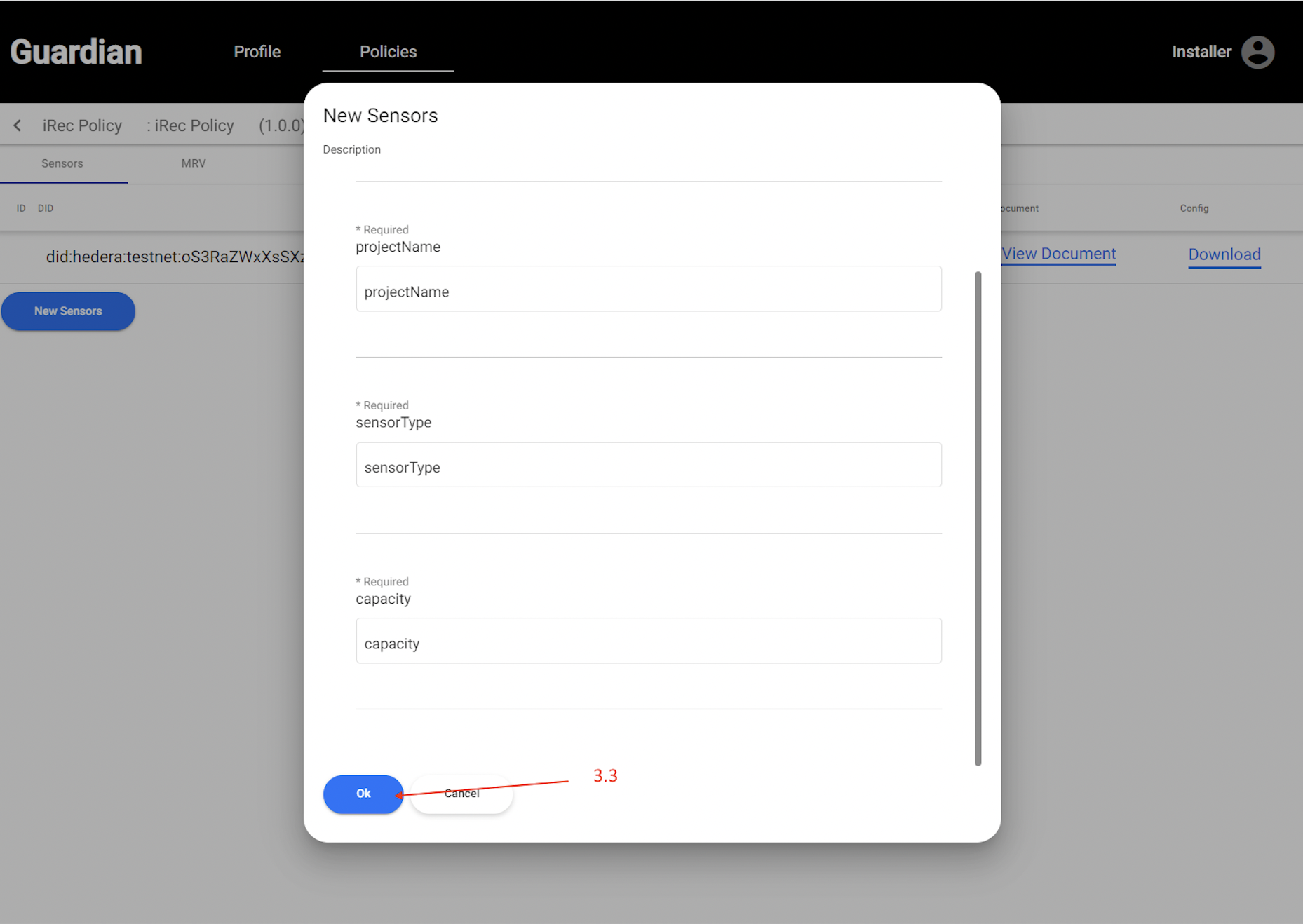 1.5 At present only PolicyRolesBlock is available to the user. Select the "INSTALLER" role.