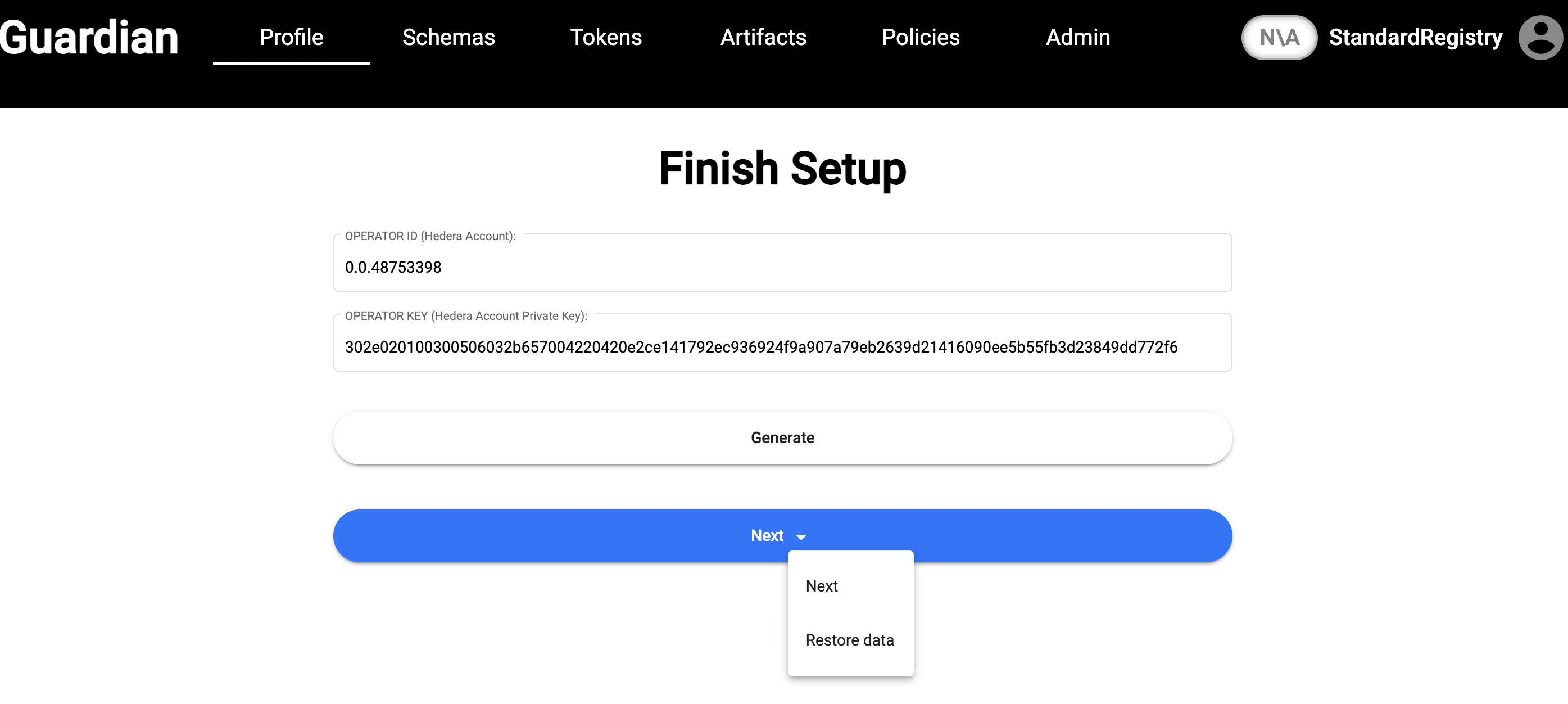**Note**: Restore Data can be restored from Hedera if data is available for setting up the Registry.