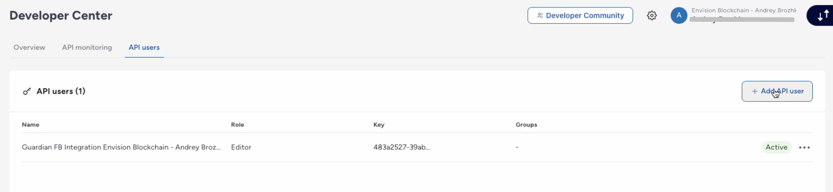 1. Create API user by clicking on Developer Center option in the side menu and then clicking on Add API User: