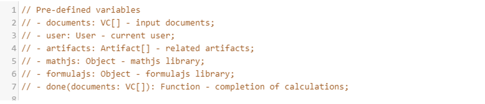 formulajs – reference to the formulajs library object allowing the use its functions in the script (<https://formulajs.info/>)