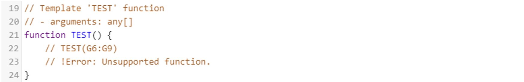 If the Excel contains unsupported function Guardian would generate the comment as shown below. In these cases policy authors need to manually add the code replicating the original Excel functionality.