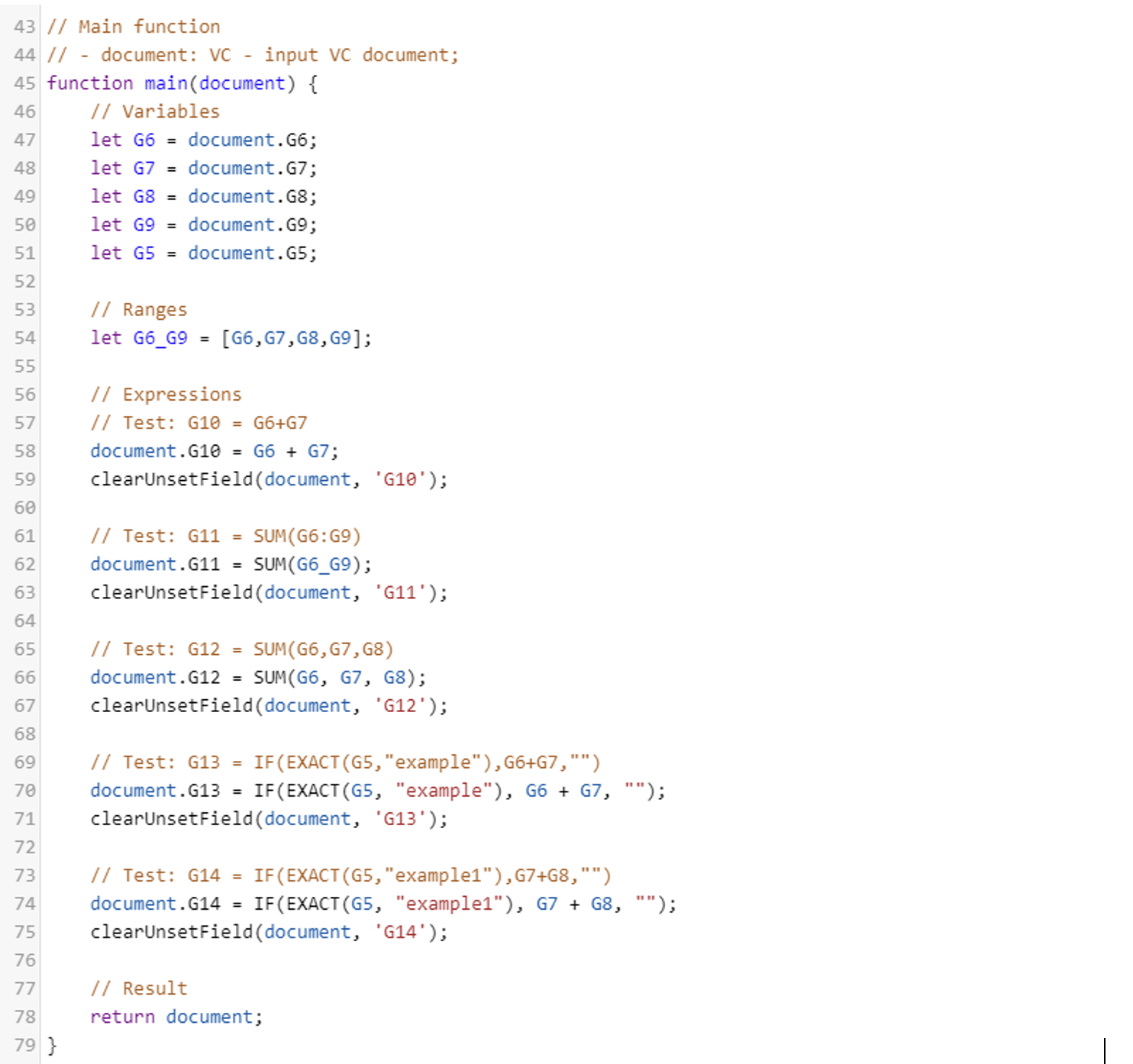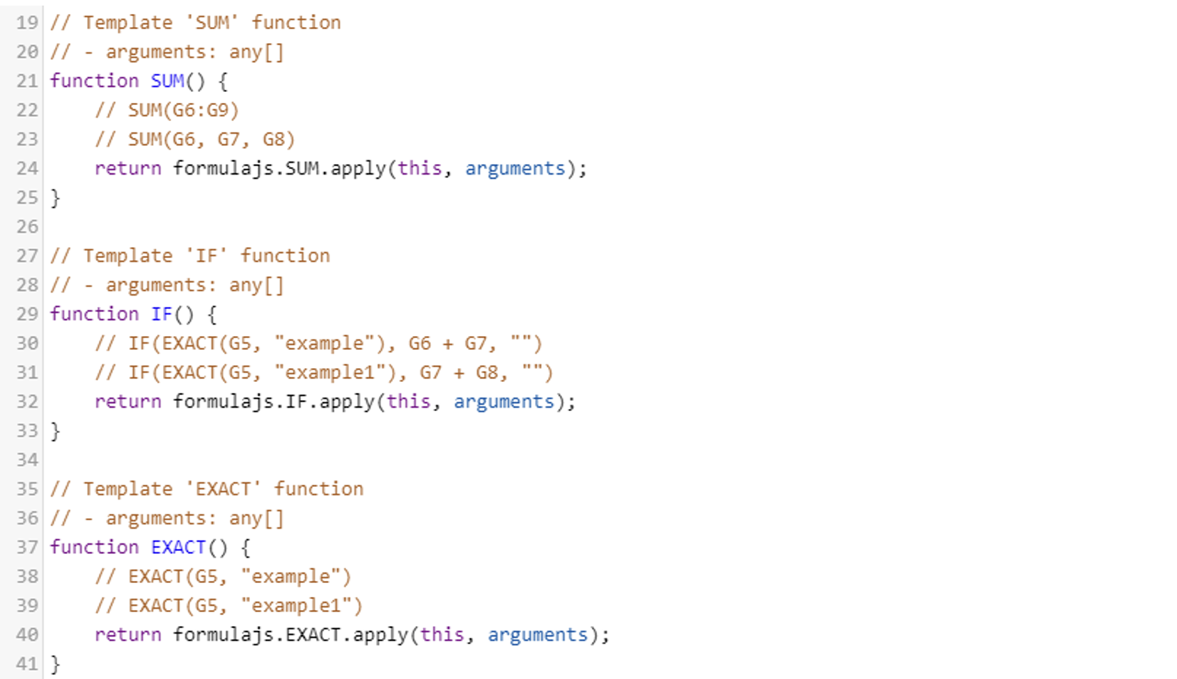 If the function from the Excel file is supported by the formulajs library Guardian will automatically generated the corresponding method call as shown on the examples below.