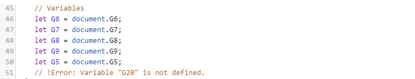 In the cases where a variable used in the expression is absent in the VC document Guardian will generate a corresponding error comment in the code: