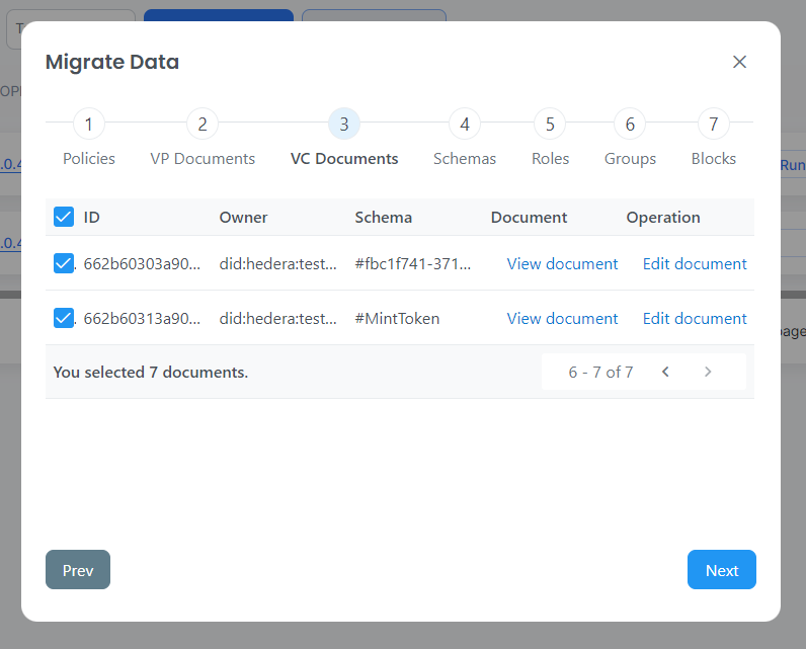 To get information about different steps in the below migration process screen, please refer to [Migration Process](https://guardian.hedera.com/guardian/standard-registry/discontinuing-policy-workflow/apis-related-to-discontinuing-policy-workflow/migratepolicy-data)