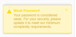 Existing users whose passwords don’t comply with the new password policy will see a notification asking them to change their password each time they log in.