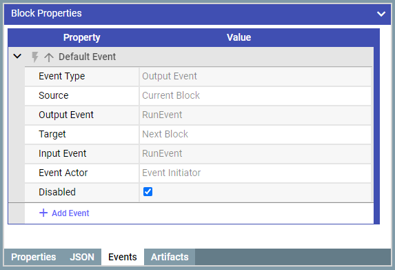 2.4 By default blocks are always directly connected to the next block (just below it). To decouple the blocks select ‘Events’ tab and switch off the default events for both blocks.