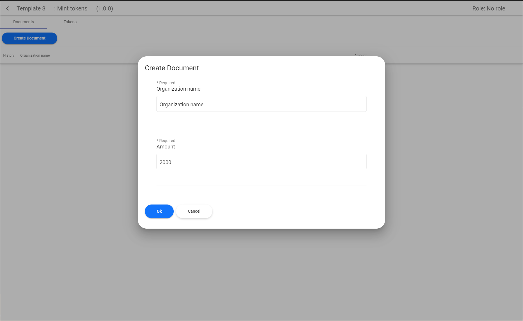 Second step of policy execution is data input and document submission. To enable this we will create a corresponding schema containing ‘Organization name’ and ‘Amount’ fields