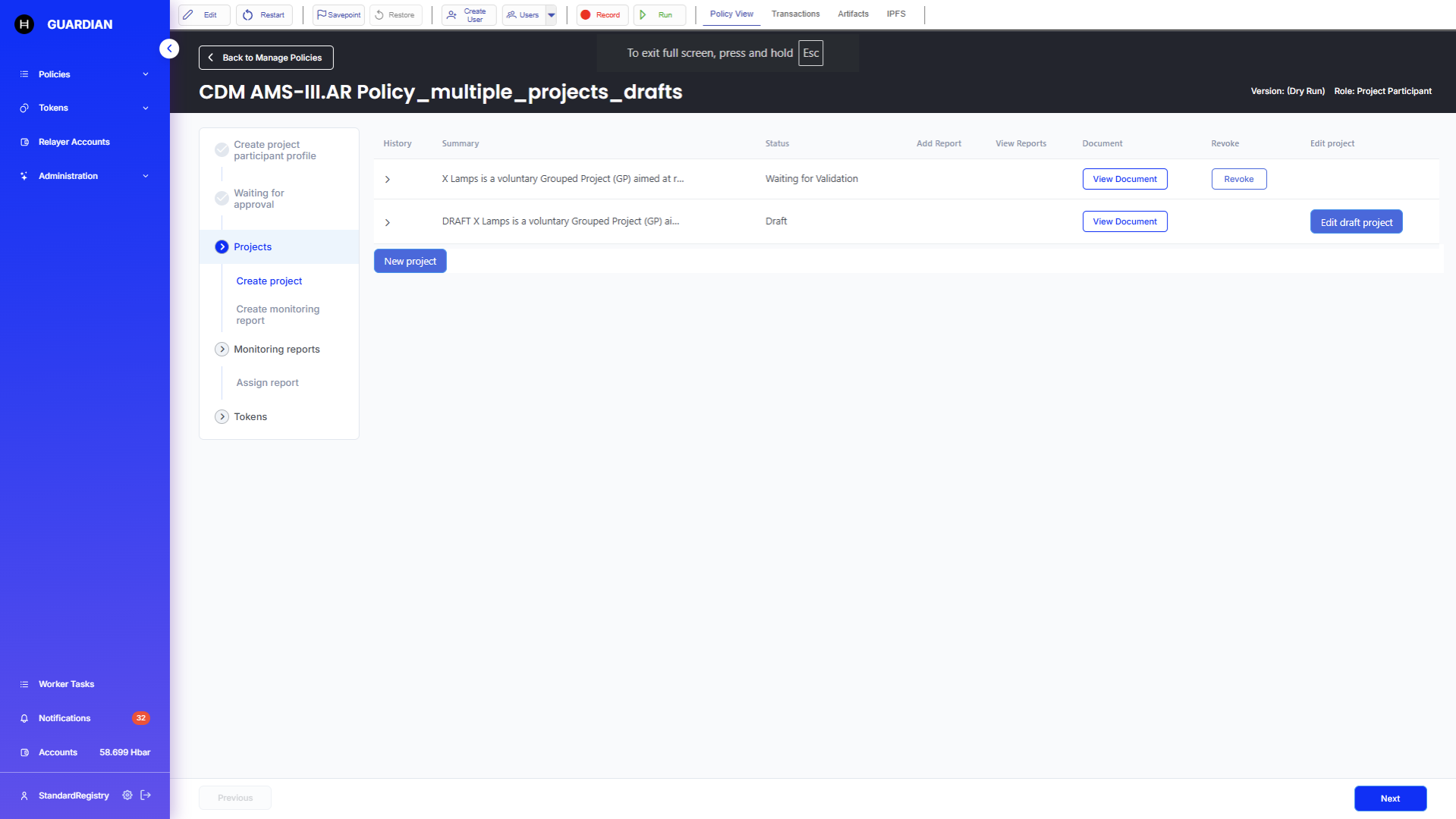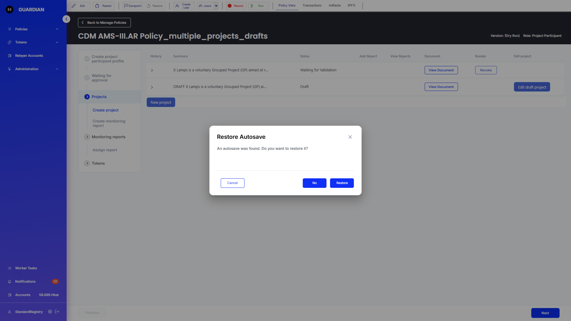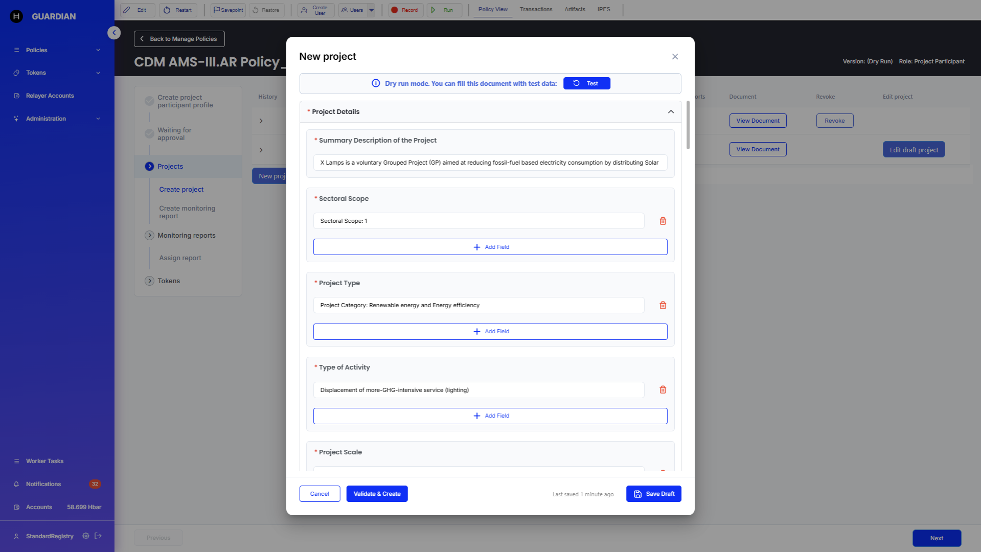 This feature supports incremental data entry, auto-saving, and role-based draft management for Project Developers (PDs), Validators (VVBs), and Reviewers.