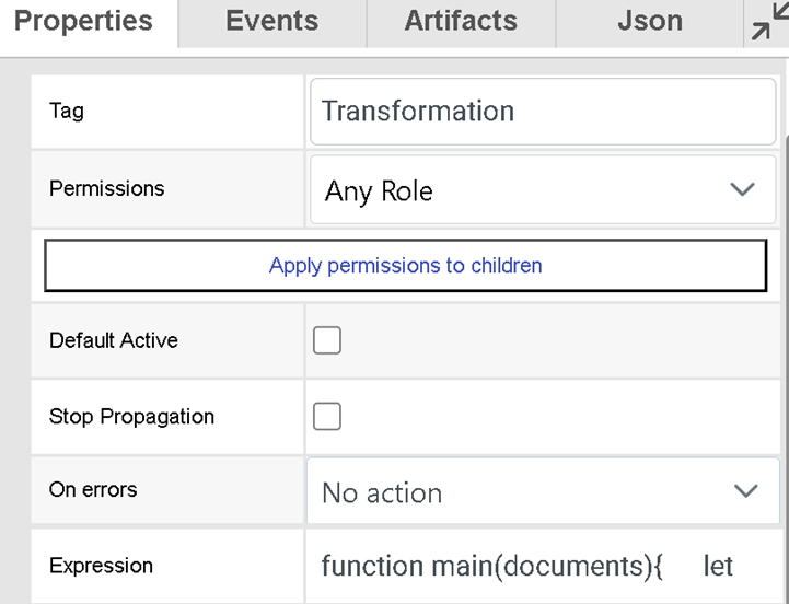 As shown in the example below, dataTransformationAddon blocks should be placed after