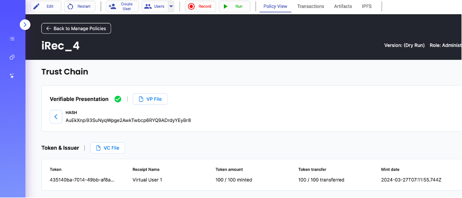 In the case when multiple linked mint blocks are used then the system displays all linked VPs as shown below: