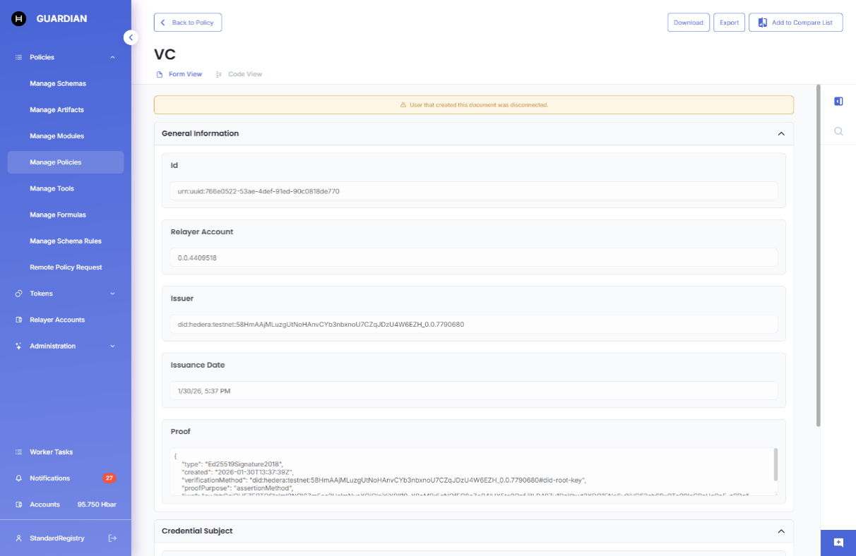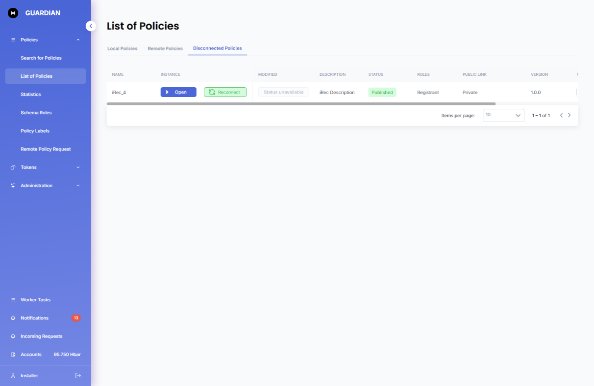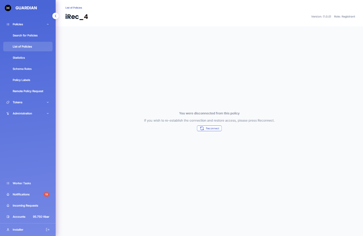 * All documents created by you within that policy are marked accordingly to inform other policy participants that you have disconnected.