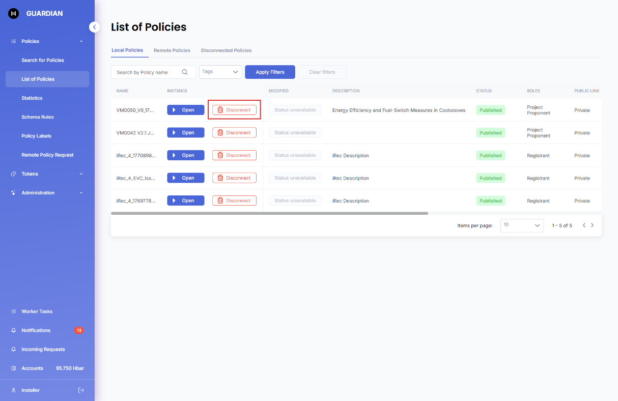 #### 5.1 Disconnecting from a Local Policy
