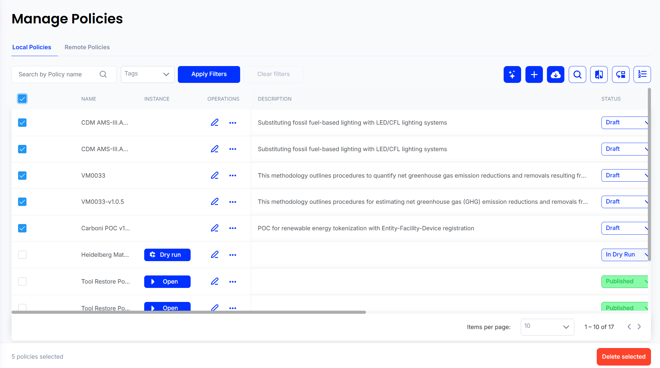 ### 4. Select and Delete Multiple Policies
