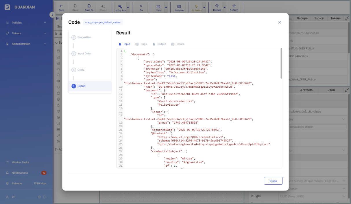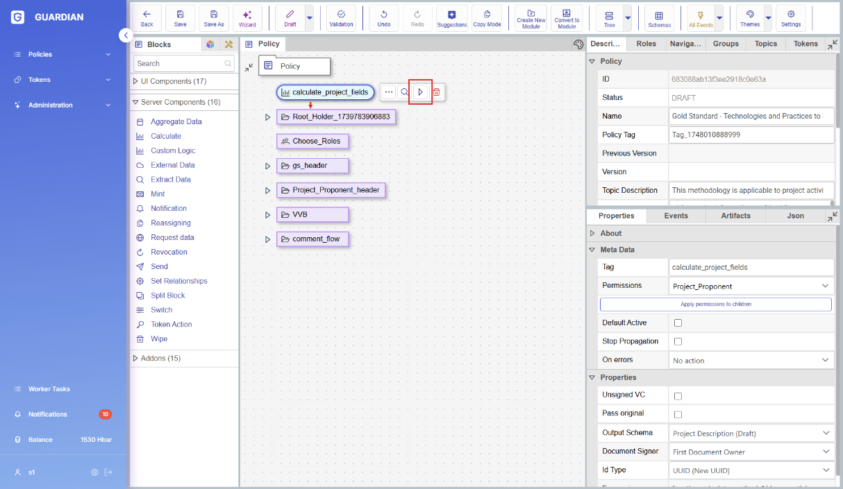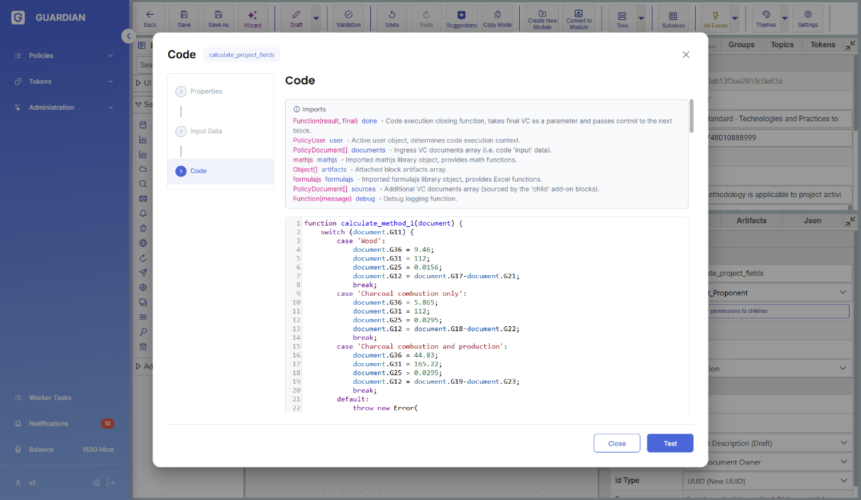 The customLogicBlock and calculateContainerBlock can be executed in a “dry-run” mode. This feature provides a sandboxed environment for testing the logic of a block independently, helping policy developers validate their implementation with different input scenarios without affecting the main policy.