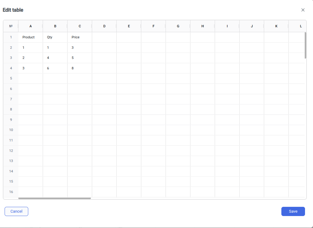 * If the table size exceeds 10 MB, manual editing in the UI is not available.