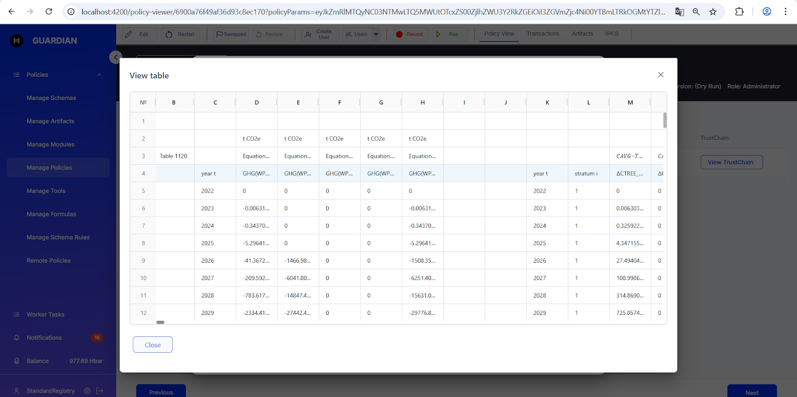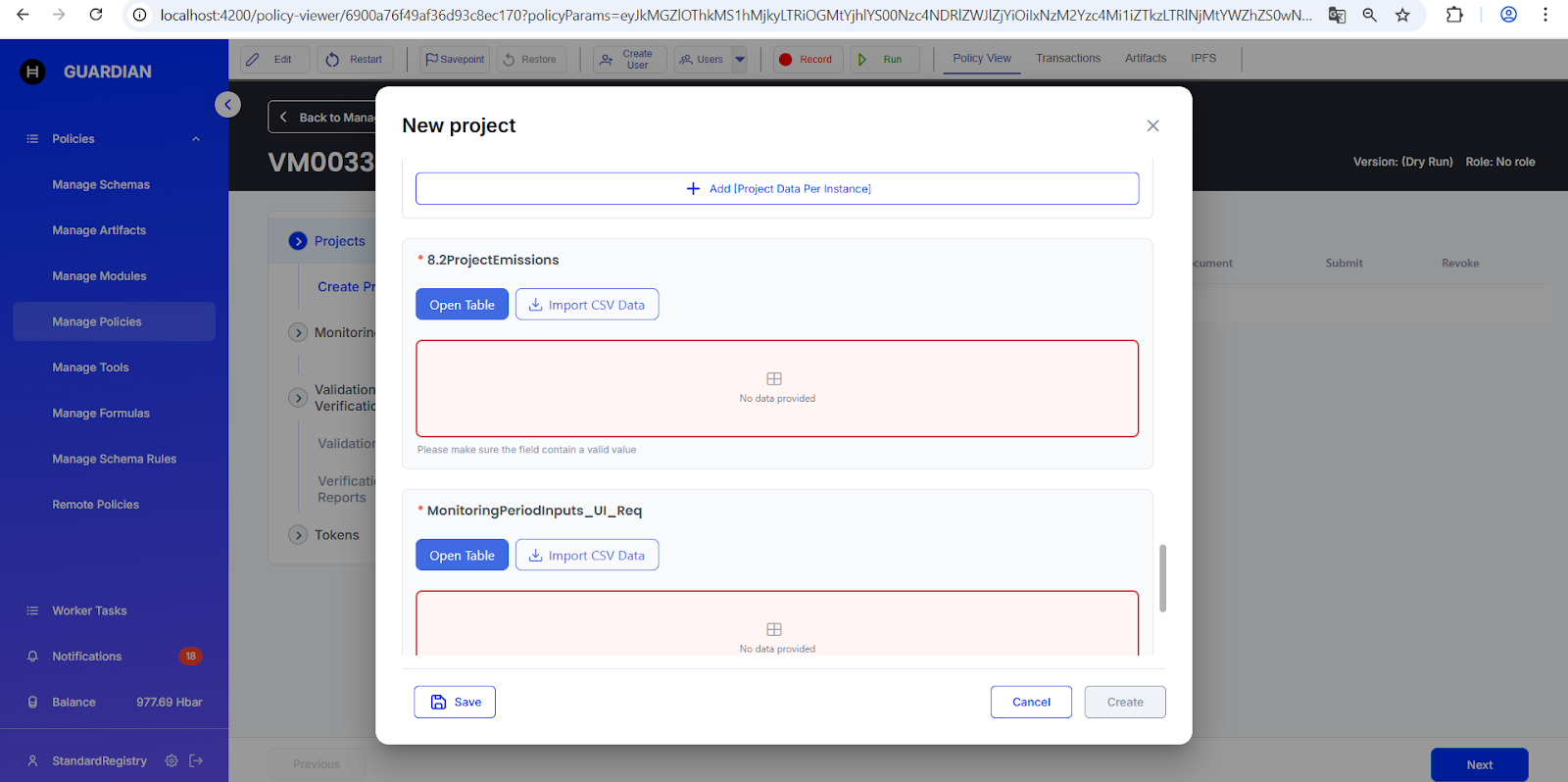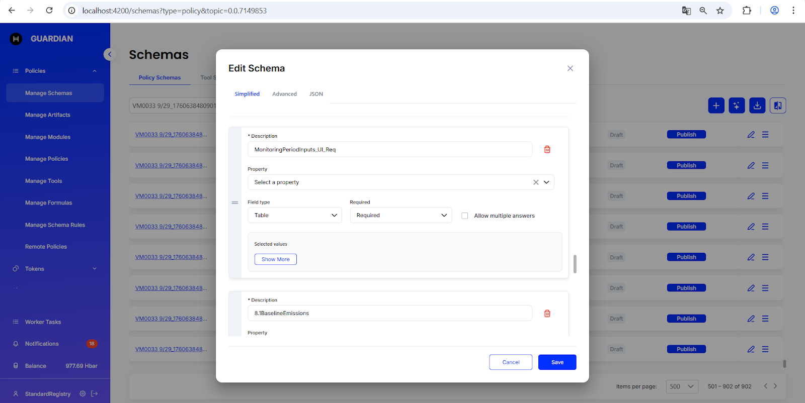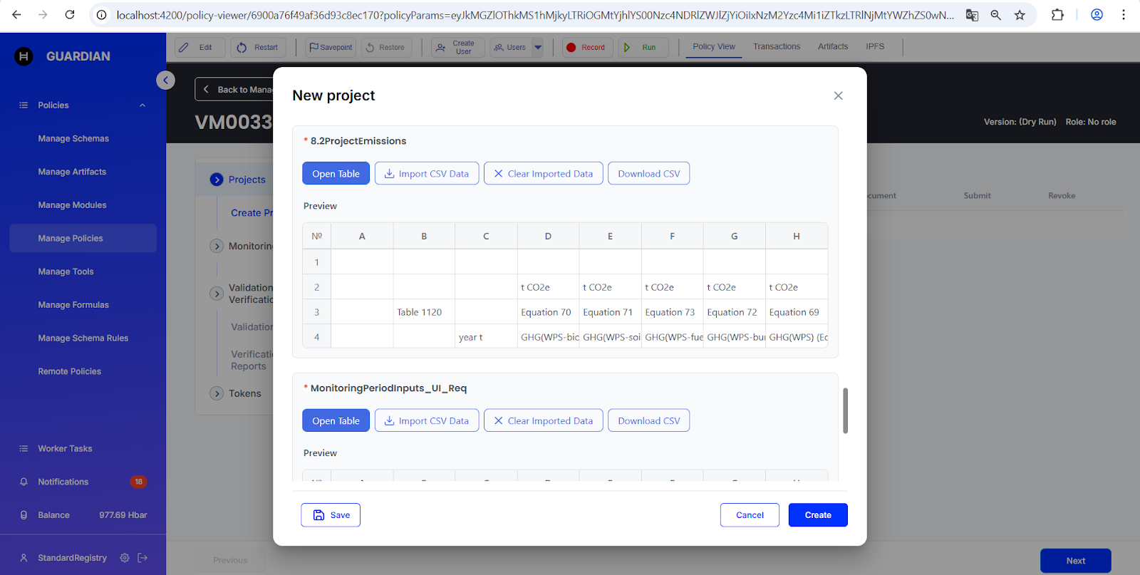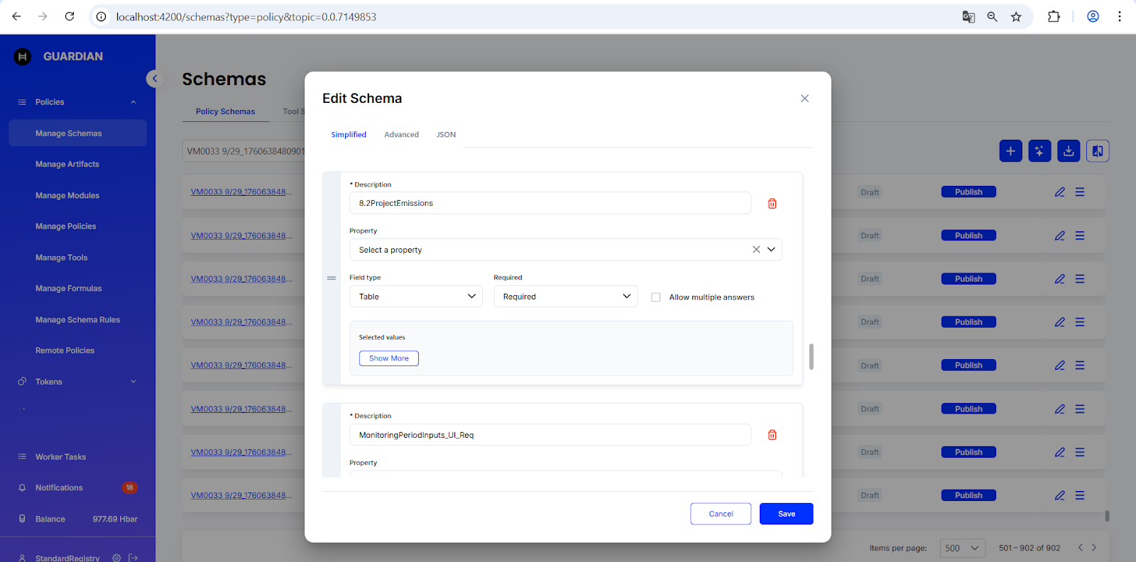 In the example of policy **VM0033**, three table fields were added to the **Project Description (Auto)** schema. Each table field retains the same name as in the original Excel file.