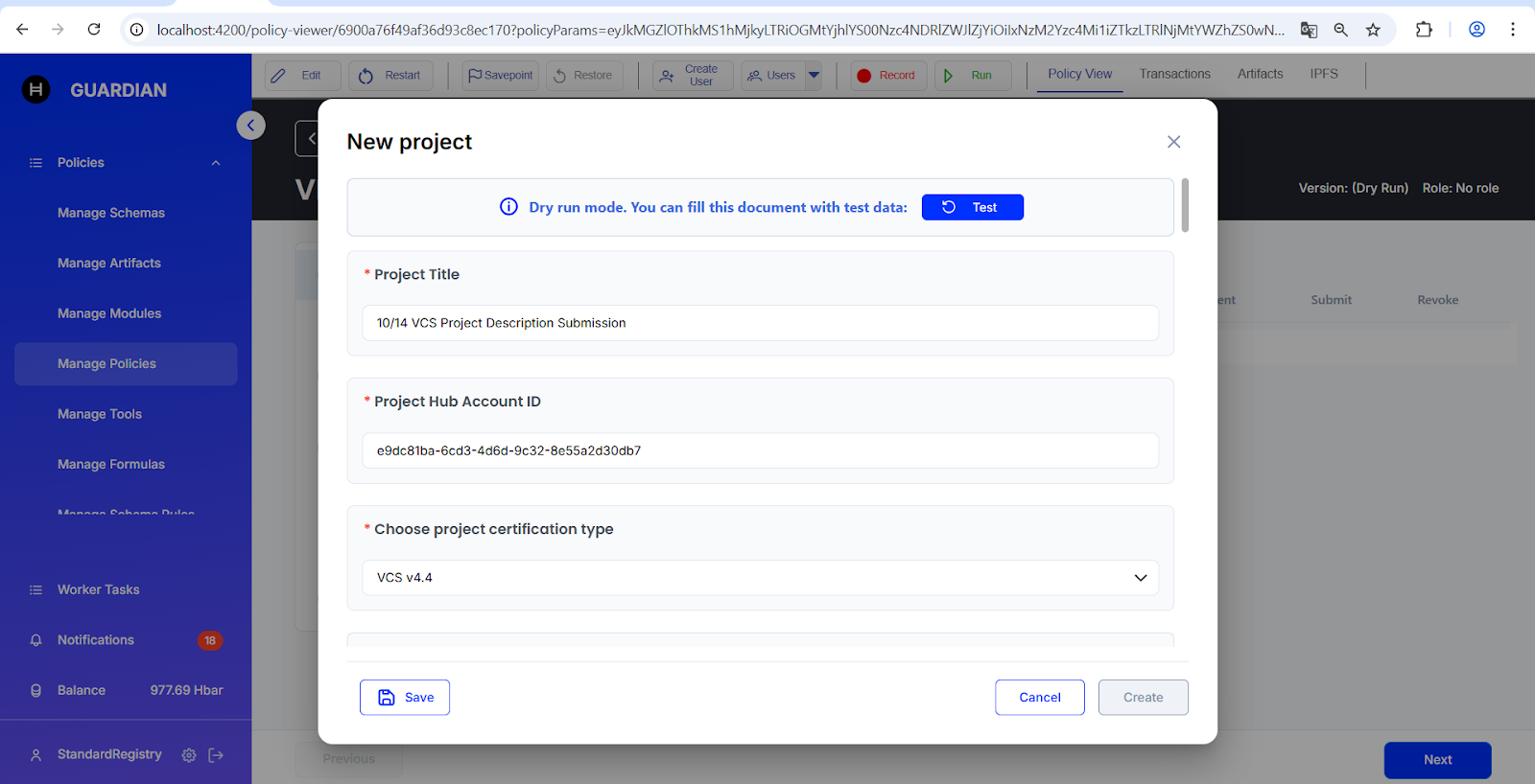 Log in as the **Project Proponent**, then create a new project by clicking the **“New Project”** button.