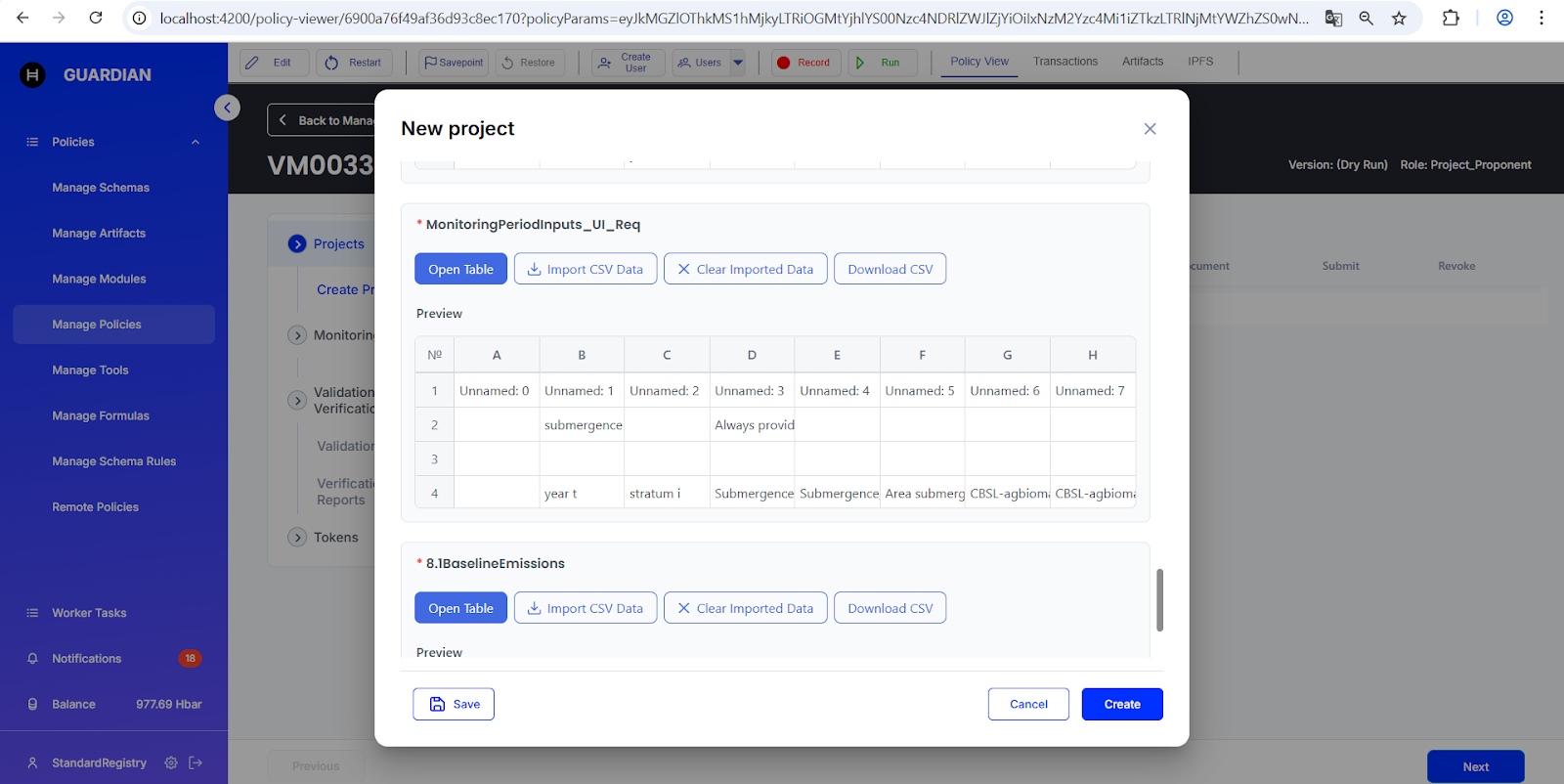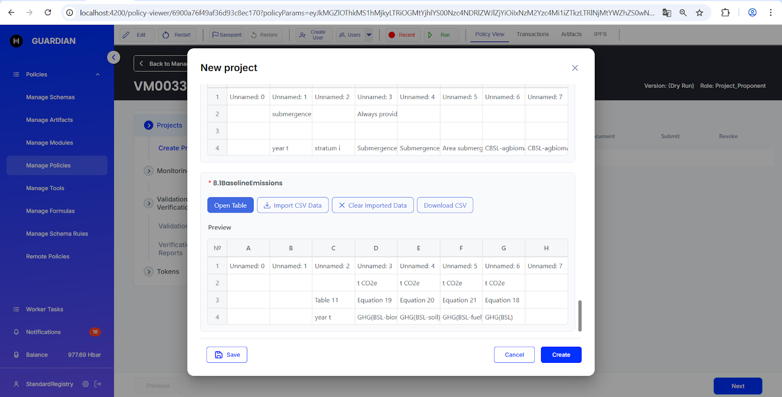 # Importing Excel Tables into the Project Schema in VM0033 methodology
