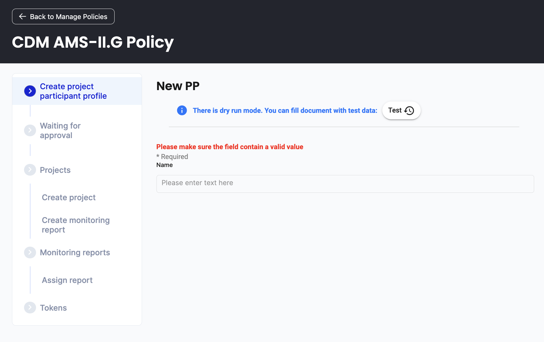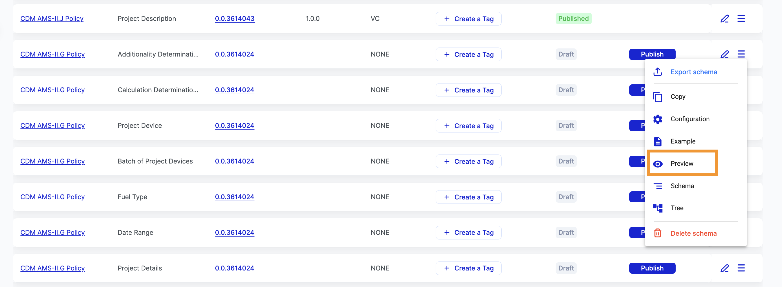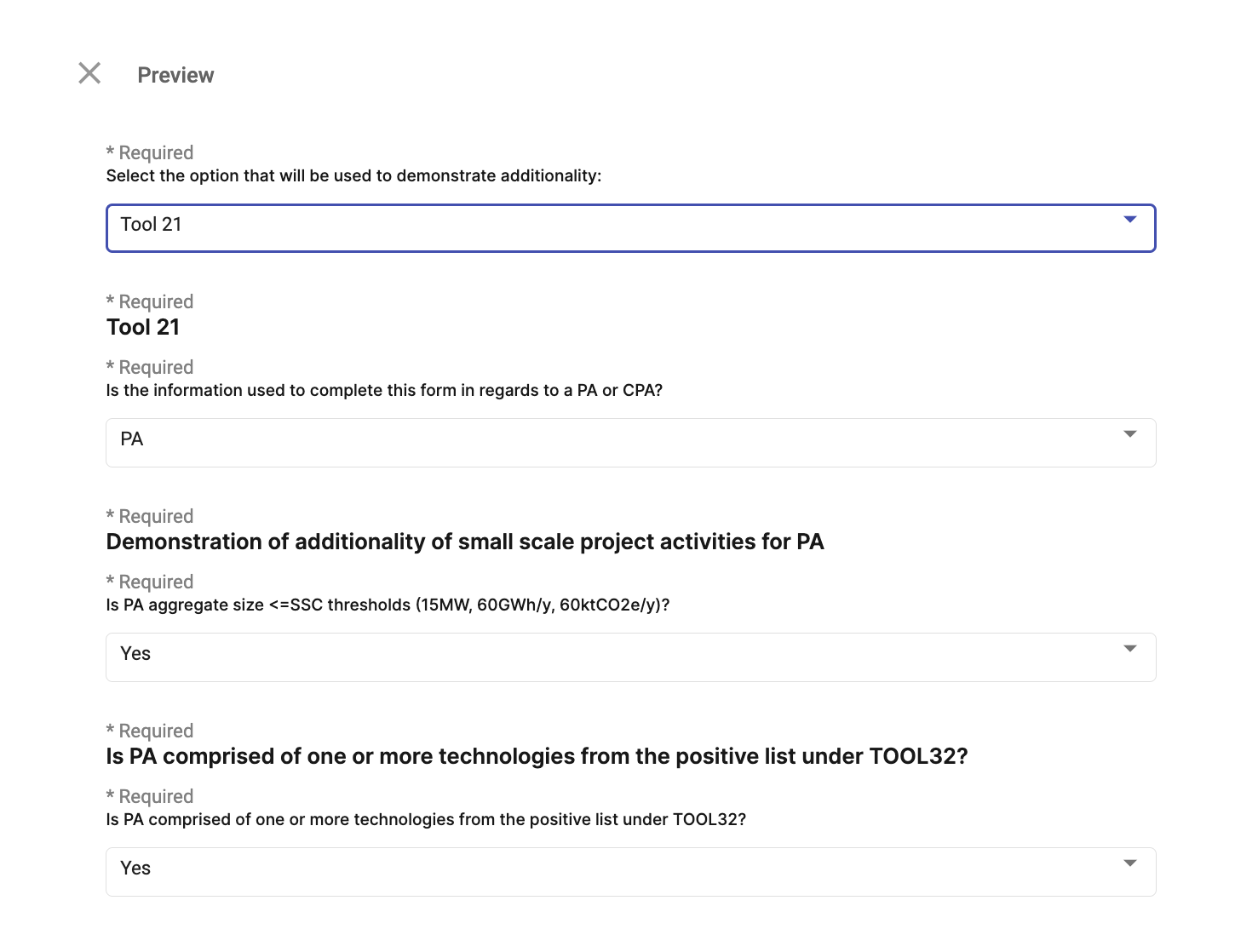 2. **Preview** – shows a preview of how users will see the policy form during the execution of the policy