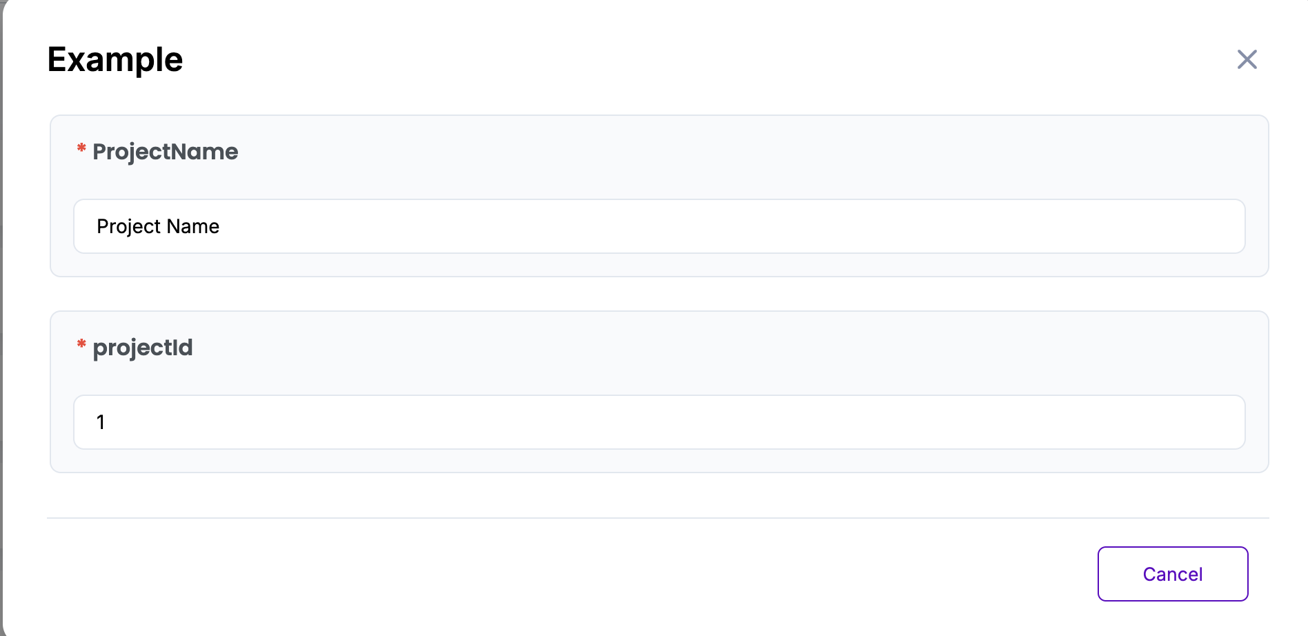 In Dry Run mode it is possible to quickly fill in the fields using the provided example values from the schema. This feature is most useful for testing/demonstrations or for experimenting and learning Guardian capabilities.
