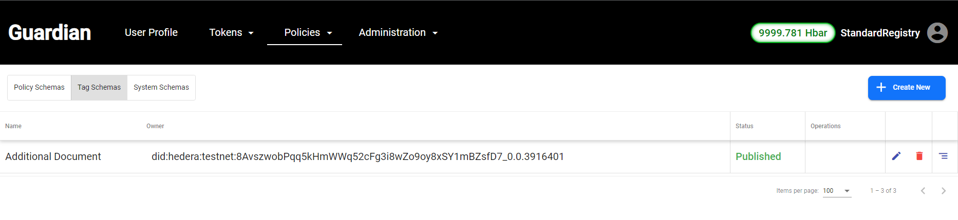 Users can select one of the published schemas in the section when adding a tag to add a corresponding document to the tag being created.