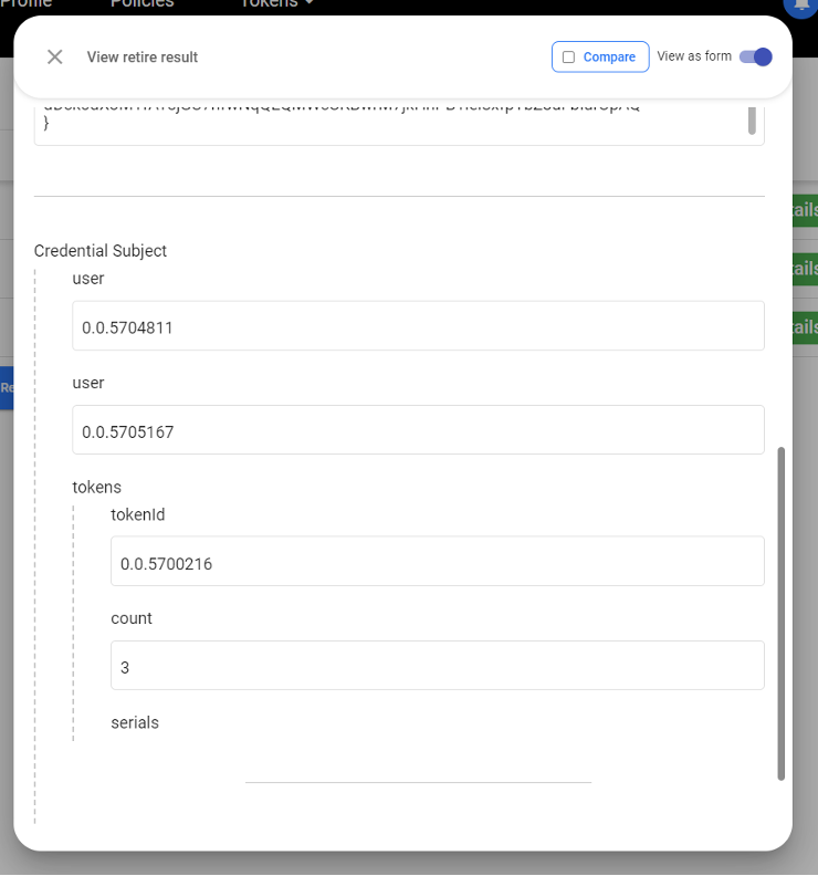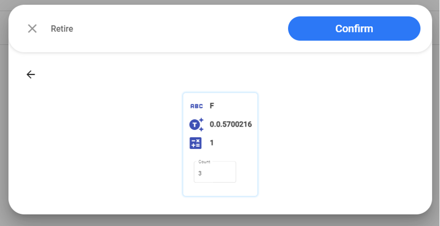 8) To execute the retirement Guardian users which hold USER role navigate to the ‘Retire’ tab and click on ‘Retire’ button, choose appropriate pool and set token count/serials
